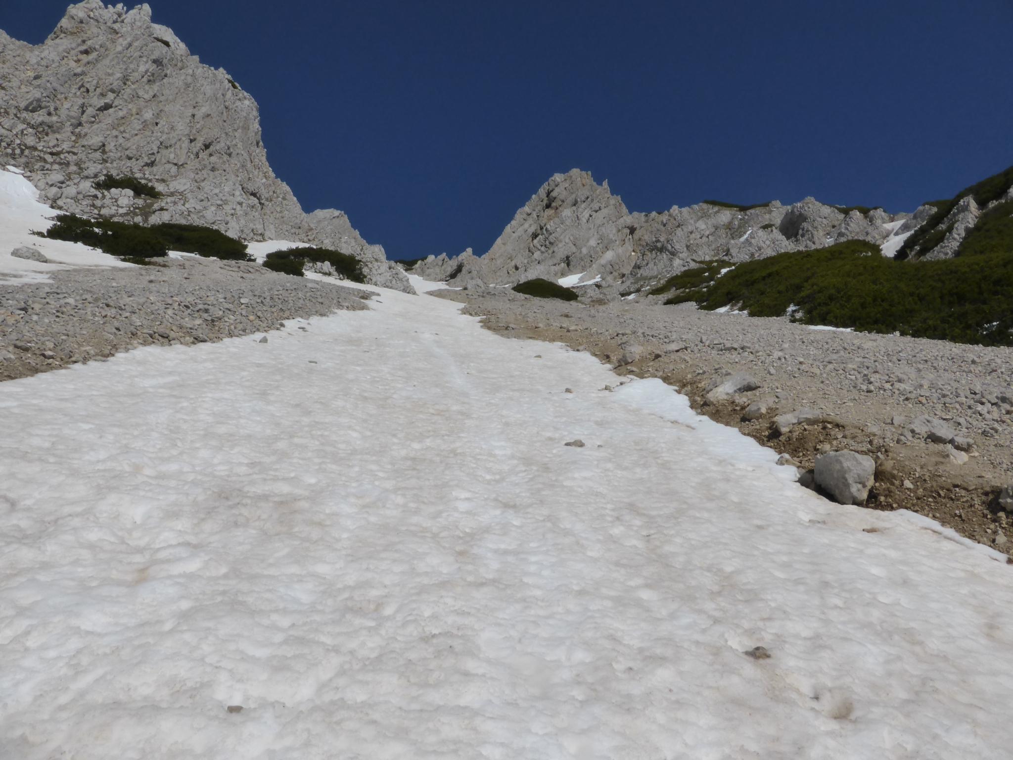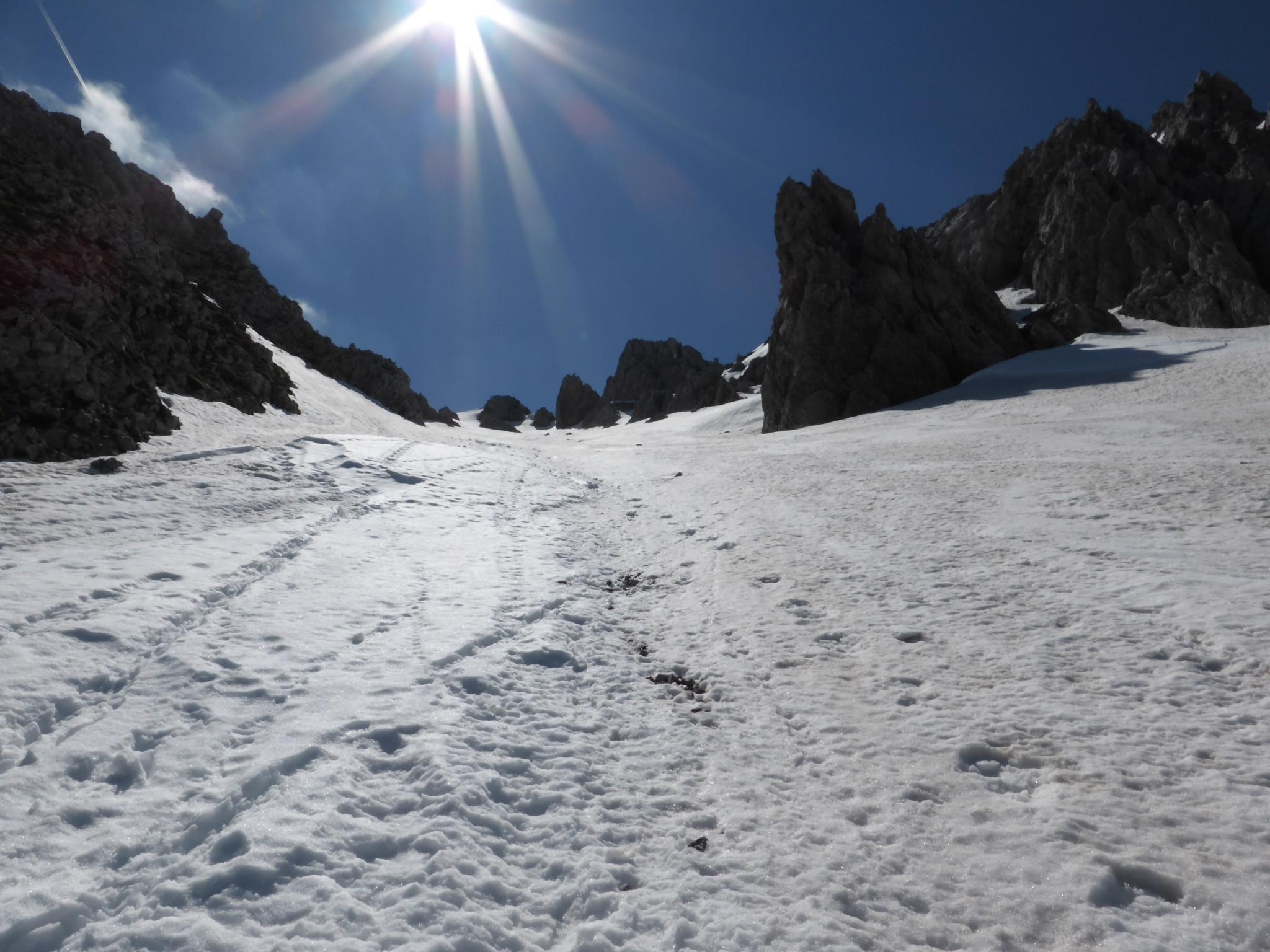 Allgemeine Verhältnisse, Schnee: Den ganzen Tag bester Sommerfirn, lediglich schattseitig (Grüne Ries) beim Aufstieg noch relativ hart.