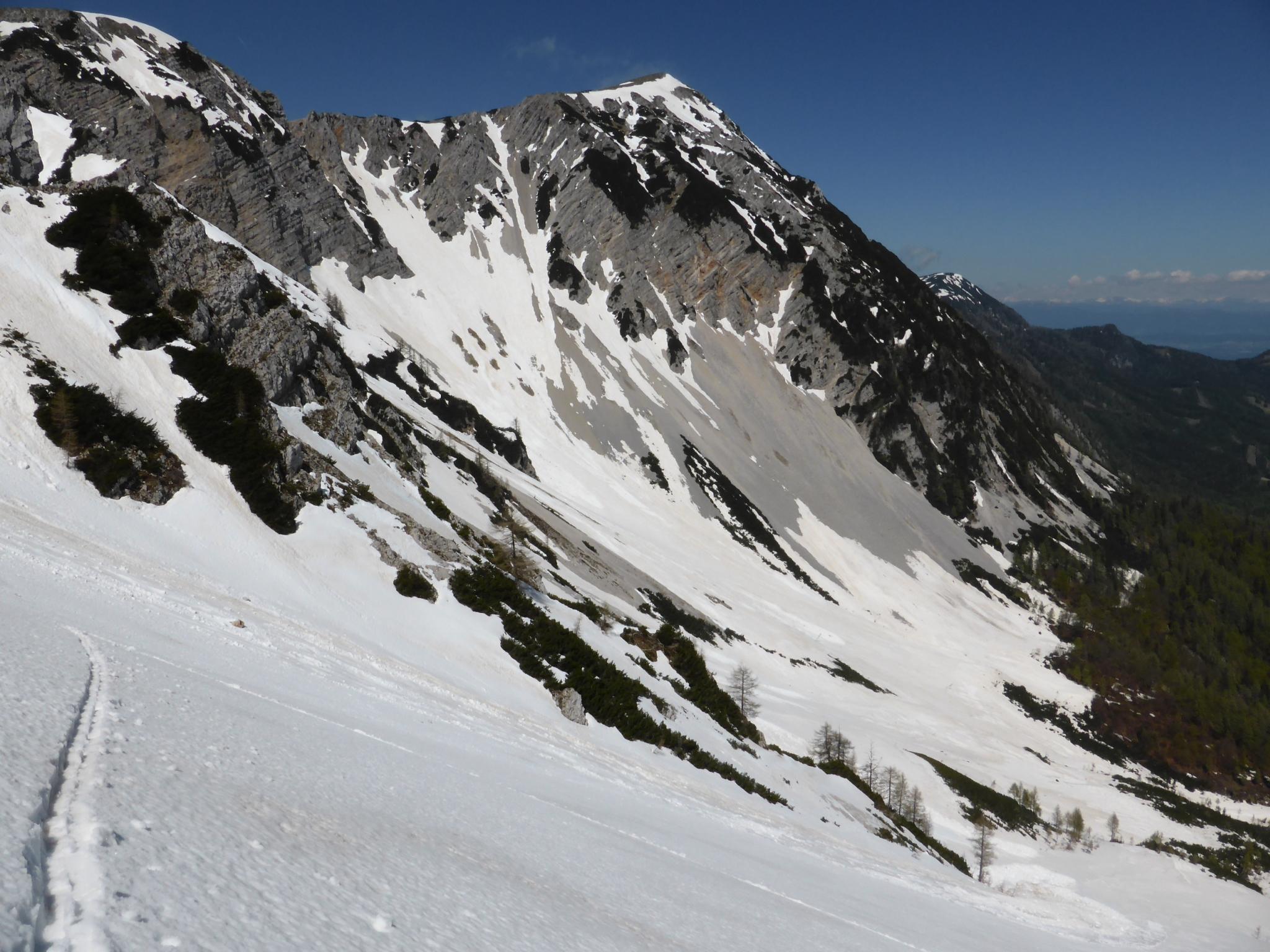 Zusammenfassung: Superbedingungen, allerdings mit zunehmender Ausaperungstendenz, der Weinasch ist nur mehr über einen ca. 5 m breiten Schneestreifen bis zum Gratkamm befahrbar gewesen.