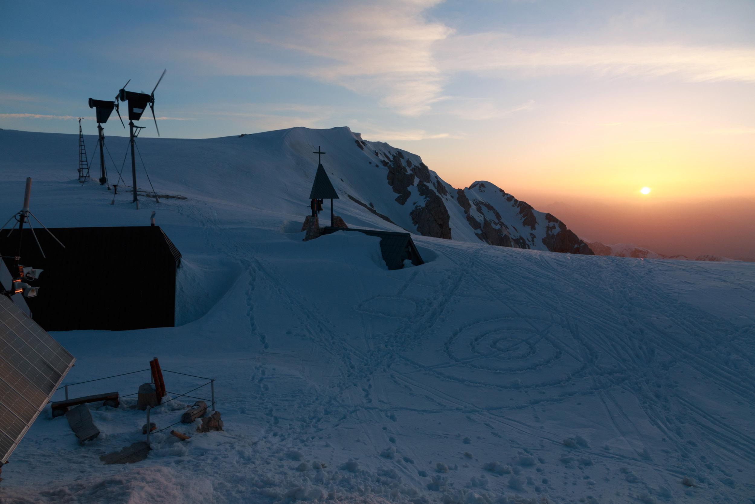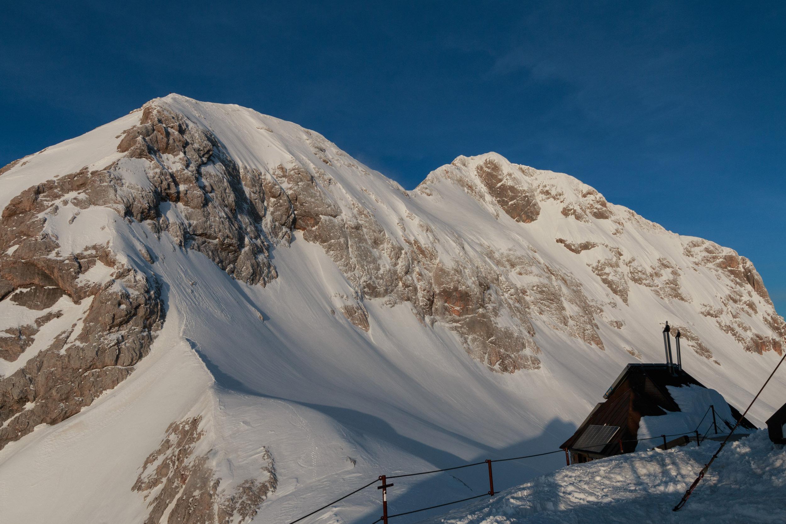 Die Hütte Triglavski Dom ist zwar ganzjährig bewirtschaftet, im Winter aber nur von den dort stationierten (sehr netten!) Meteorologen, quasi im Nebenerwerb. Zum Essen gibts Kraut und Eintopf, thats it. Heizung gibts nicht (in den Schlafräumen 2°C), und Wasser auch nicht, nicht mal zum Händewaschen.