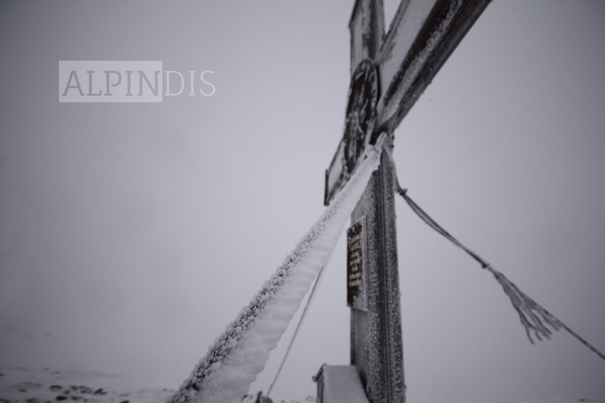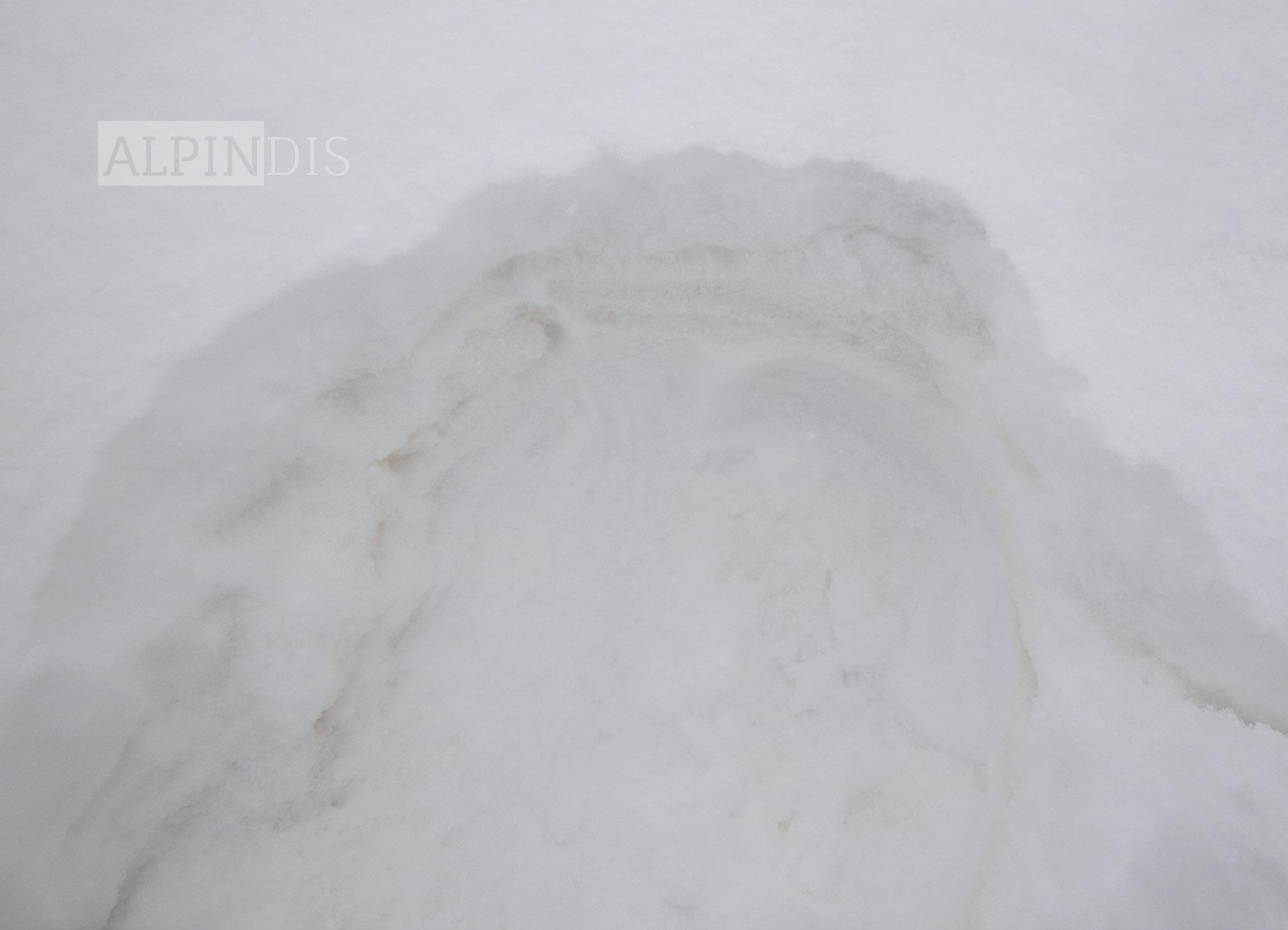 Schneedecke: Neuschnee ca. 10-15cm. Der mäßige NW-Wind in Kammnähe verfrachtete den kalten Neuschnee. Dieser liegt sehr störanfällig auf einer dünnen Schmelzharsschicht (gelb vom Saharastaub) – kalt auf warm. Im Nordsektor war diese Schicht weniger stark ausgeprägt.