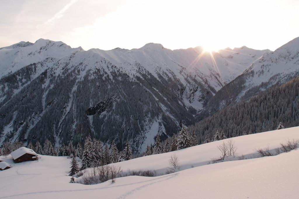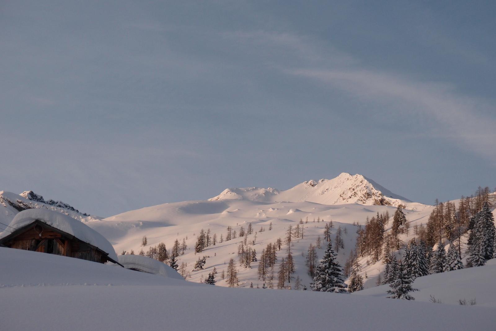 Start bei Nebel im Tal; ab Modereggalm feiner Pulver ohne Windzeichen.