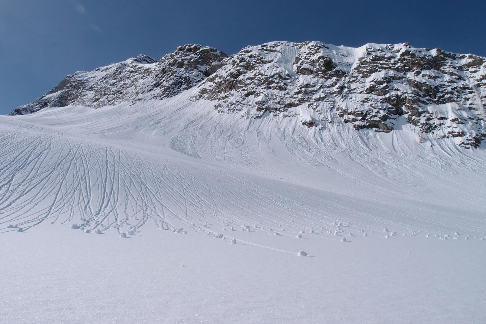 Konnten heute nur Sluffs aus steilem Gelände beobachten; Schneedecke 2-4cm windbearbeitet erst ab 2300m und in Hauptkammnähe; keine Schneebretter; im Tagesverlauf Anfeuchtung in entsprechenden Expositionen mit Verharschung bei einsetzendem Wind am Nachmittag; starke Verfrachtungen bis in kammferne Gebiete.