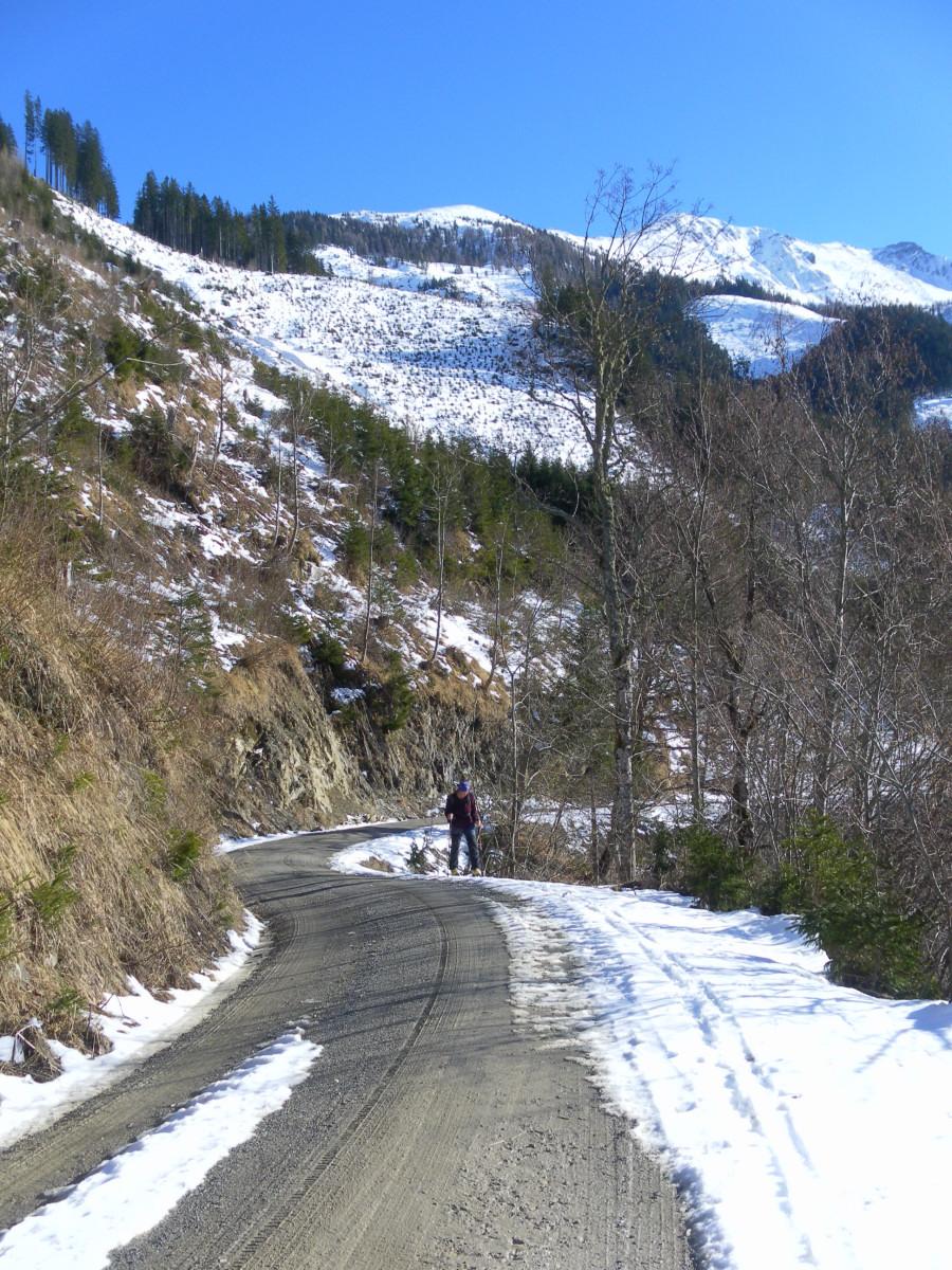 noch durchgehende Schneedecke im Wolfbachtal