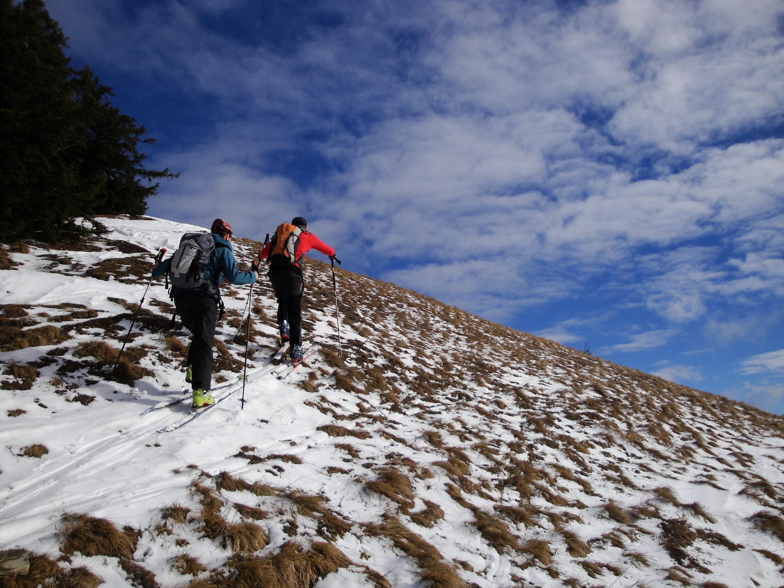 Nicht gerade viel Schnee, jedoch brauchbare Bedingungen. Die Abfahrt in die Tiefbrunnau bis zum Parkplatz ist noch möglich. Einige kurze Stellen werden jedoch bald aper sein. Trotzdem lohnt sich die Tour.