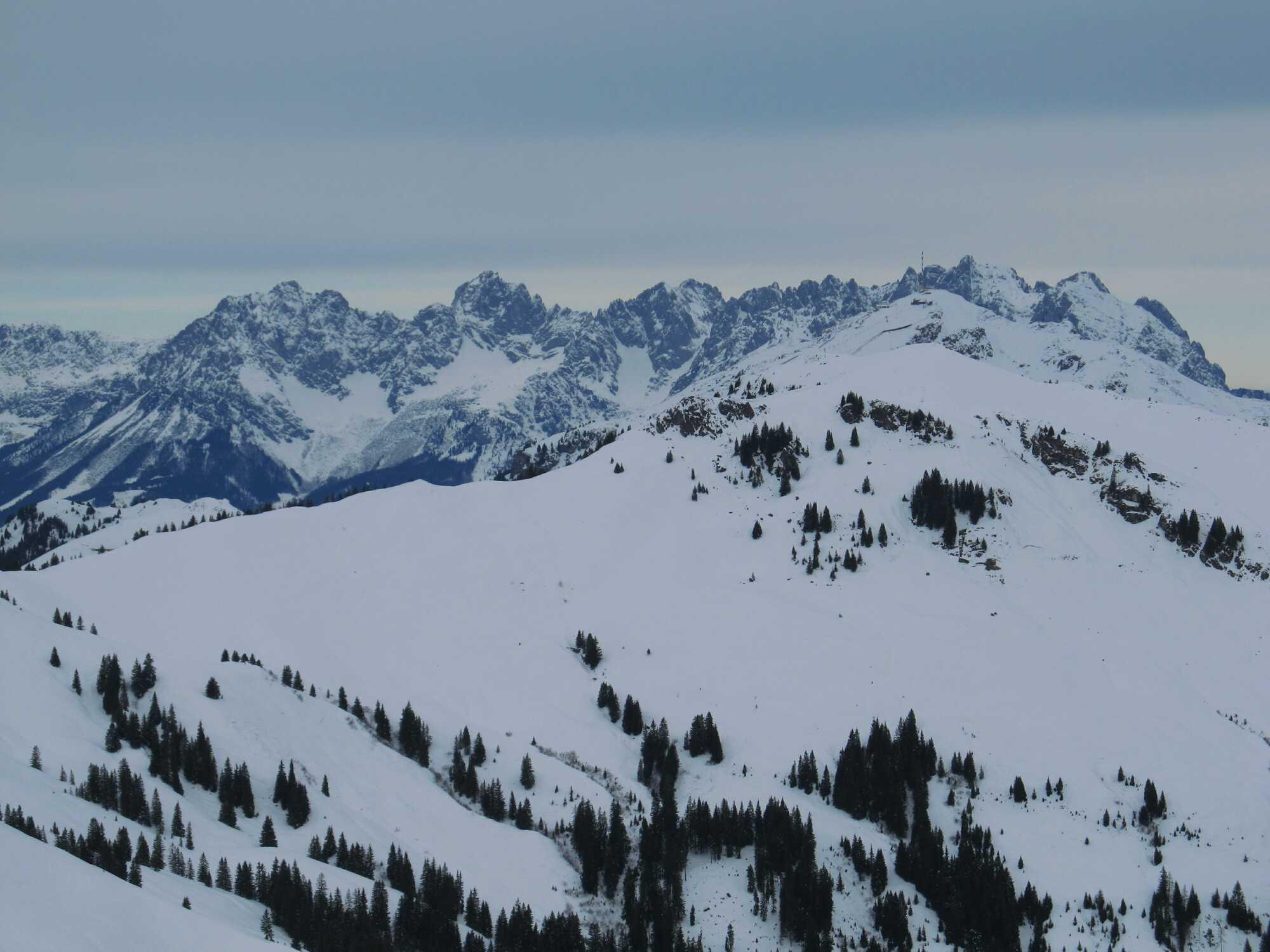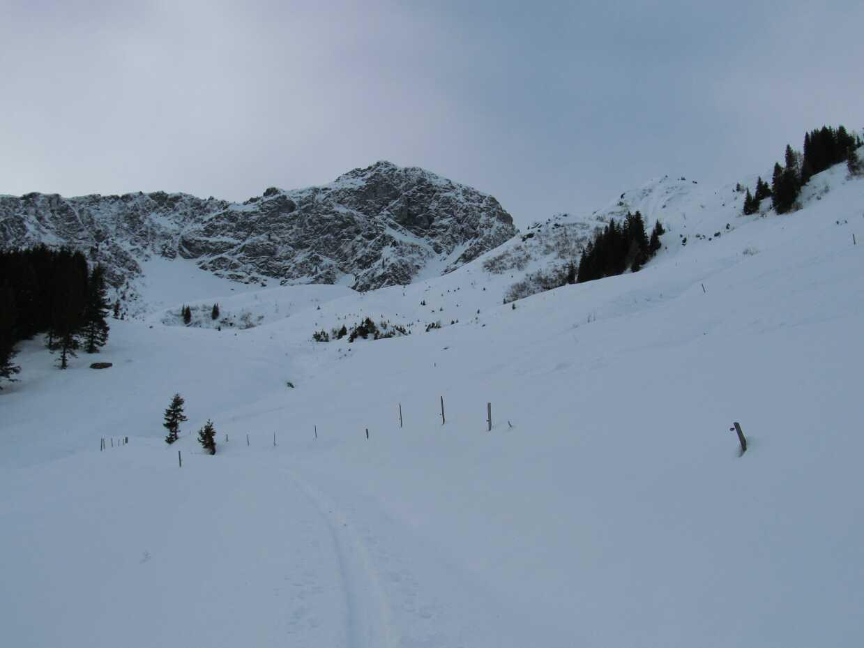 Schneelage: Am Morgen beim Aufstieg bis zur Farmangeralm noch Pulver, darüber Wechsel zwischen Pulver und etwas windgepressten Bereichen. Die Spurarbeit oberhalb ca. 1400m war deshalb etwas anstrengend. Bei der Abfahrt gings dann besser als befürchtet, die Pressschneepassagen ließen sich ganz gut beherrschen (wenn man das Abtauchen der Skispitzen vermied), aus dem Pulver unterhalb ca. 1400-1500m war inzwischen Pappschnee geworden, der in Talrichtung immer schwerer wurde. Keine Steinkontakte.