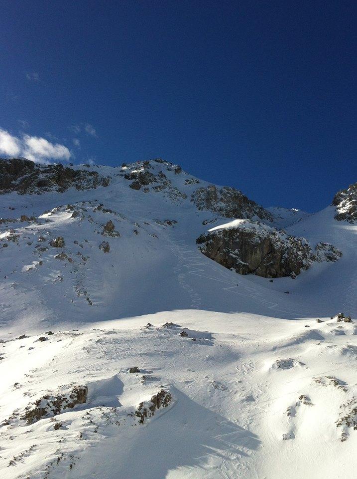Die Abfahrt war steil, die Bedingungen toll und somit wedelten wir mit Genuss hinunter ... - Abfahrt bis zum Parkplatz möglich!