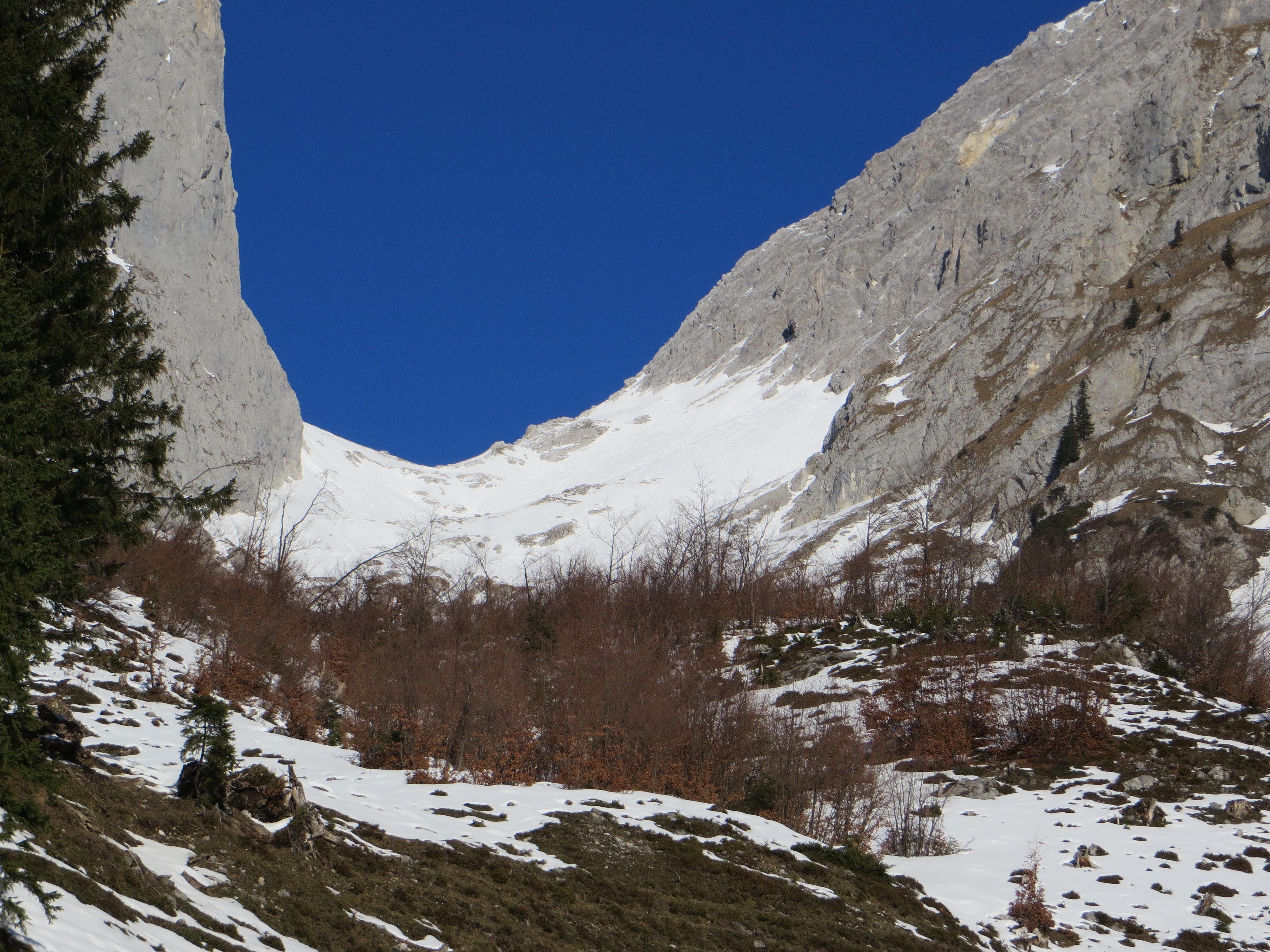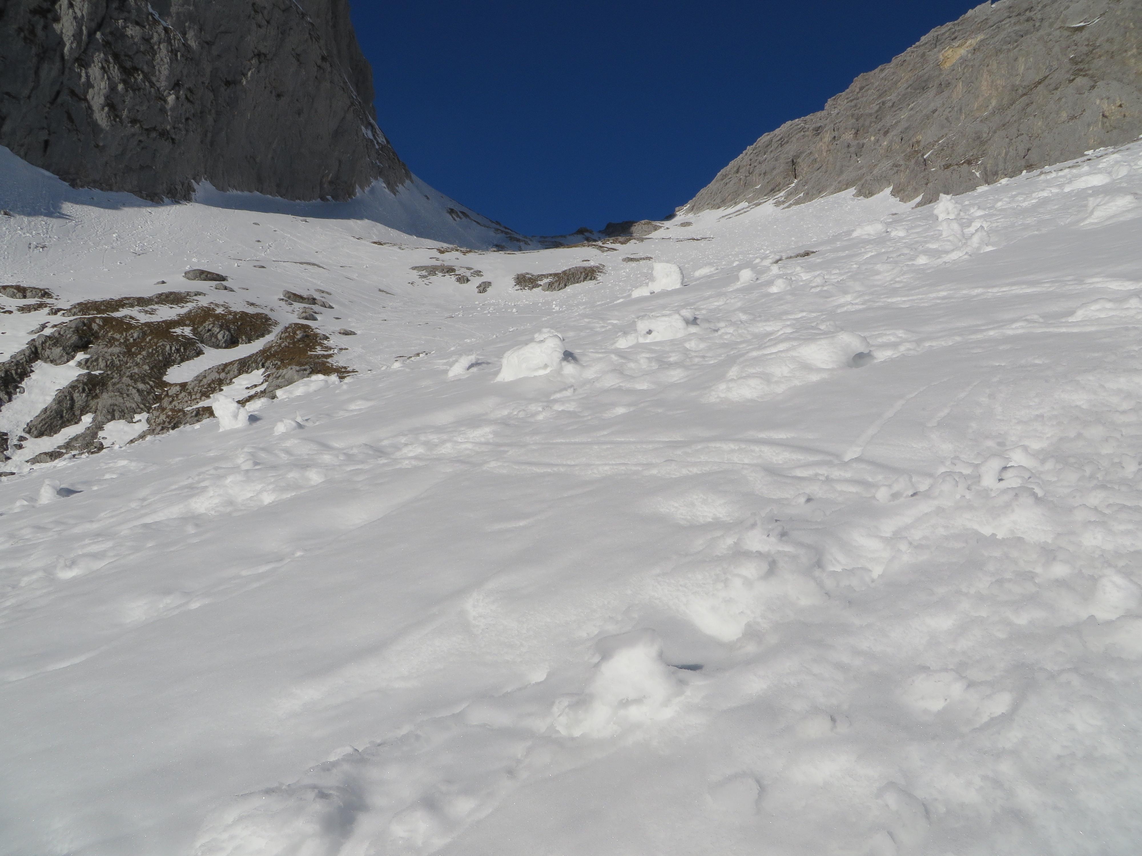Lawinen: keine frischen Aktivitäten, keine Warnzeichen irgendeiner Art, nur reichlich Zeichen früherer reger Aktivitäten, formell Warnstufe 1 (Tirol, Bayern, Salzburg)