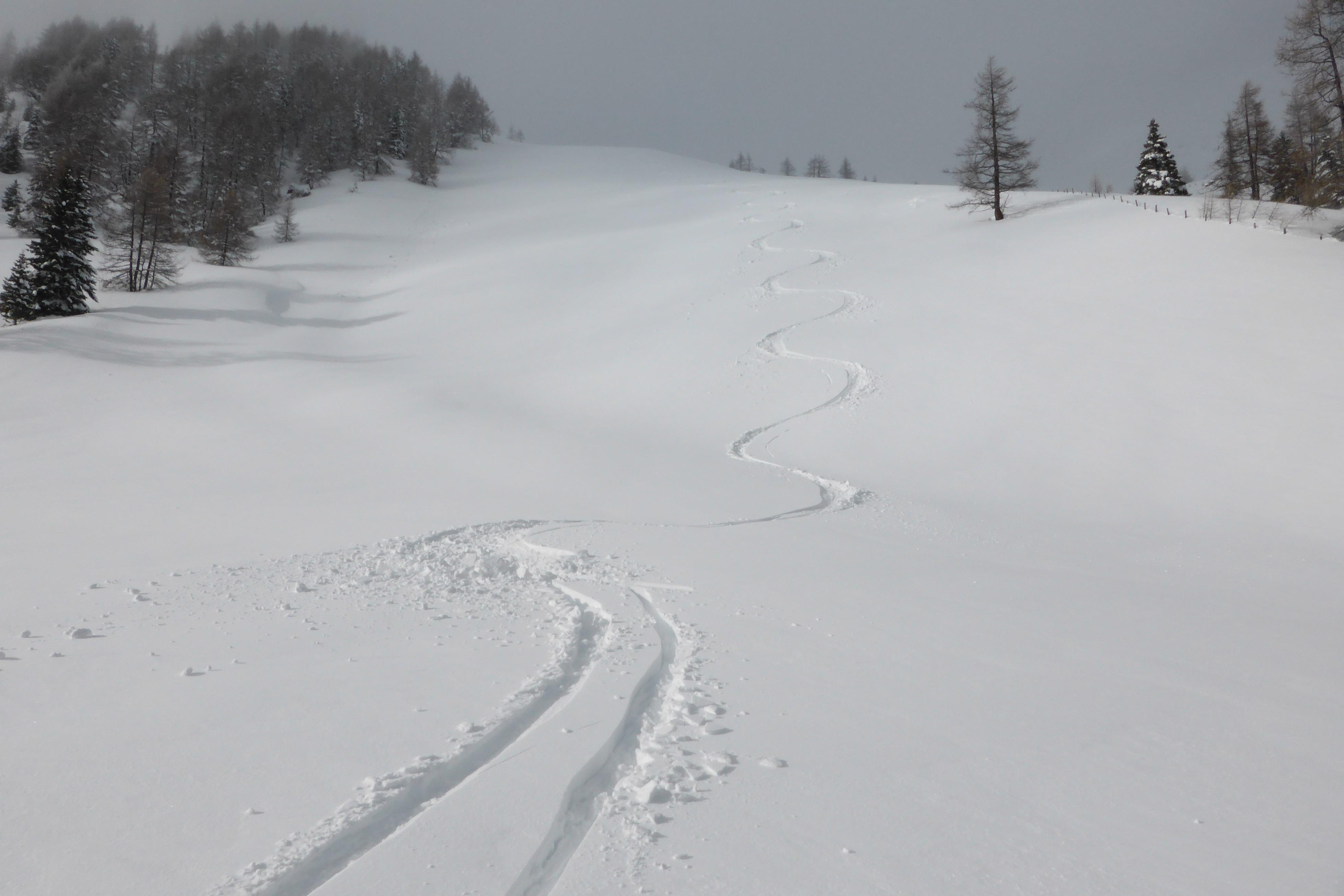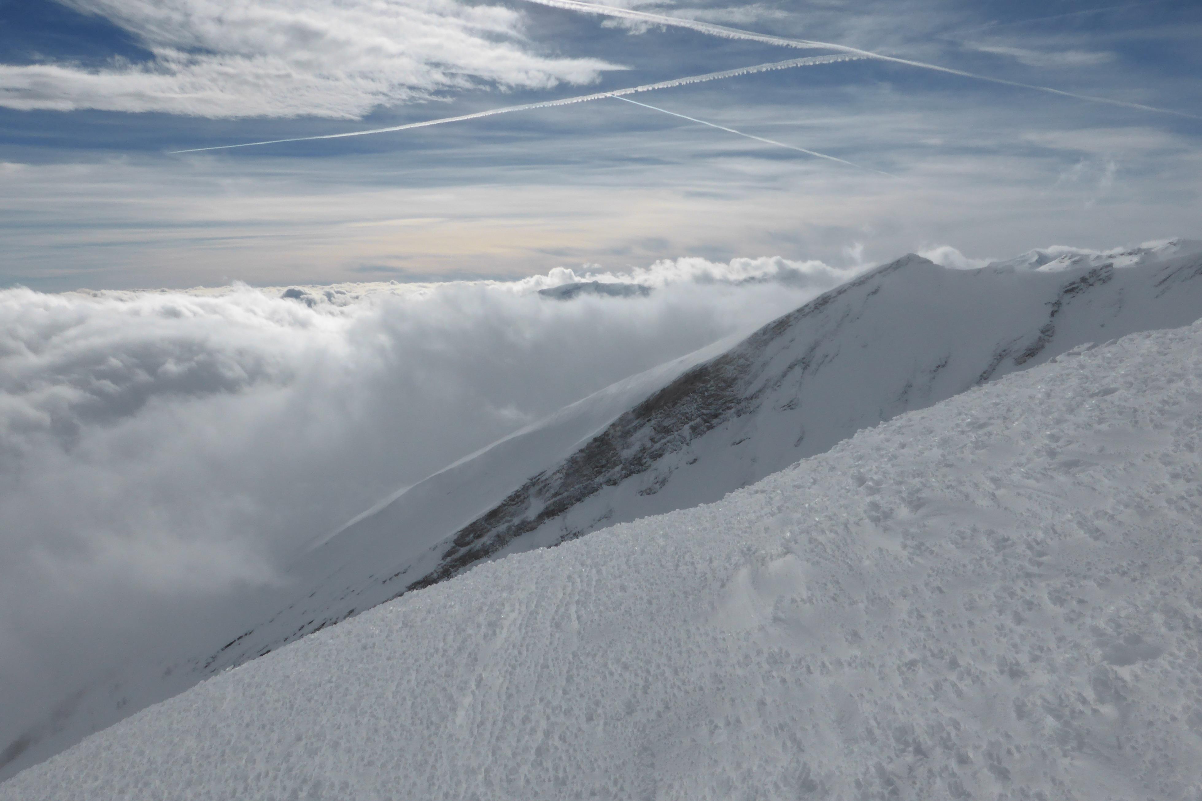 die ersten 800 Hm eine mühsame Wühlerei im Tiefschnee - erst am stark abgeblasenen Gipfelhang ging es etwas flotter dahin...
