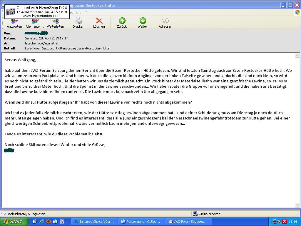 Lagebricht vom 12.4.13, Vorabend der Anreise, nachzulesen auf http://lawine.tirol.gv.at/lagebericht/archiv