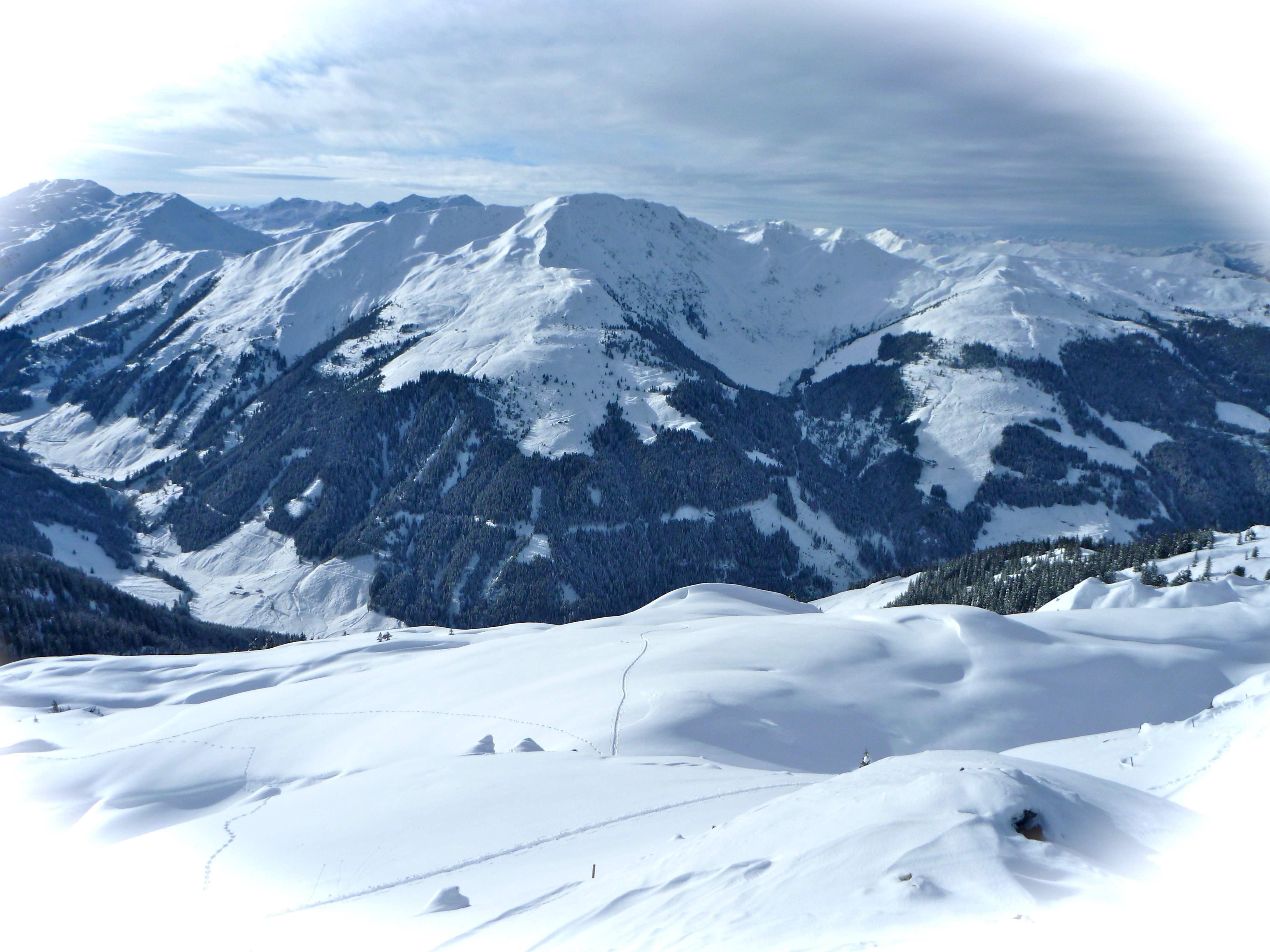 ....aus dem Windautal "Variante Mansi" (direkt ab Brücke bei 1018m kurz vor der Tagweidalm über innerer und Äußerer Gersting, Gerstinger Oberkaralm) 1000hm bei bis zu 1m Neuschnee gespurt.
