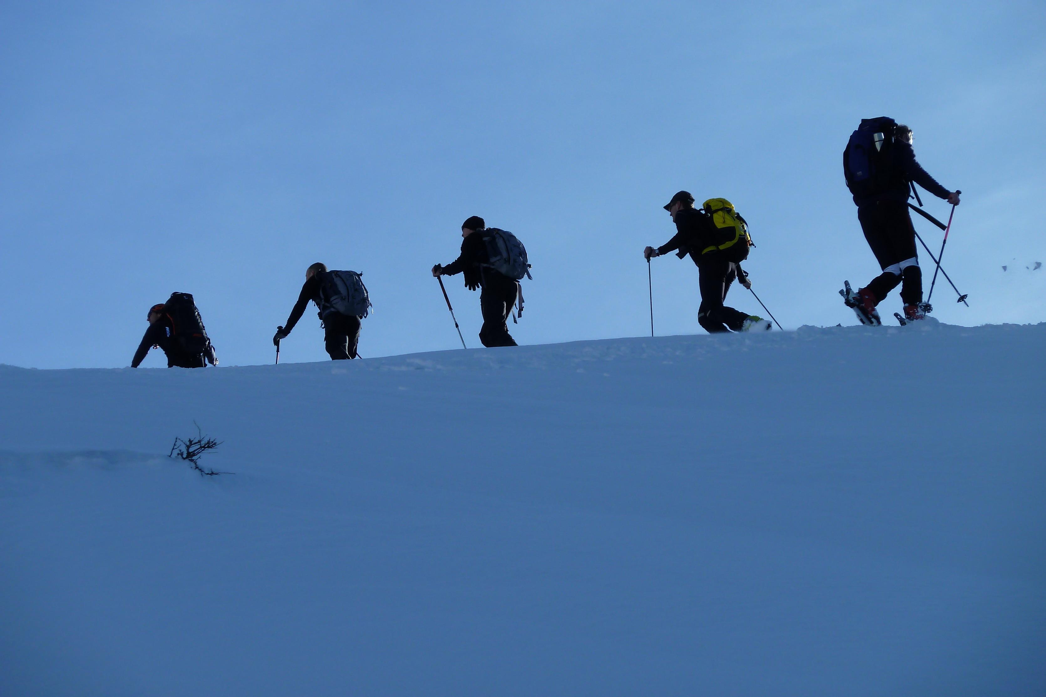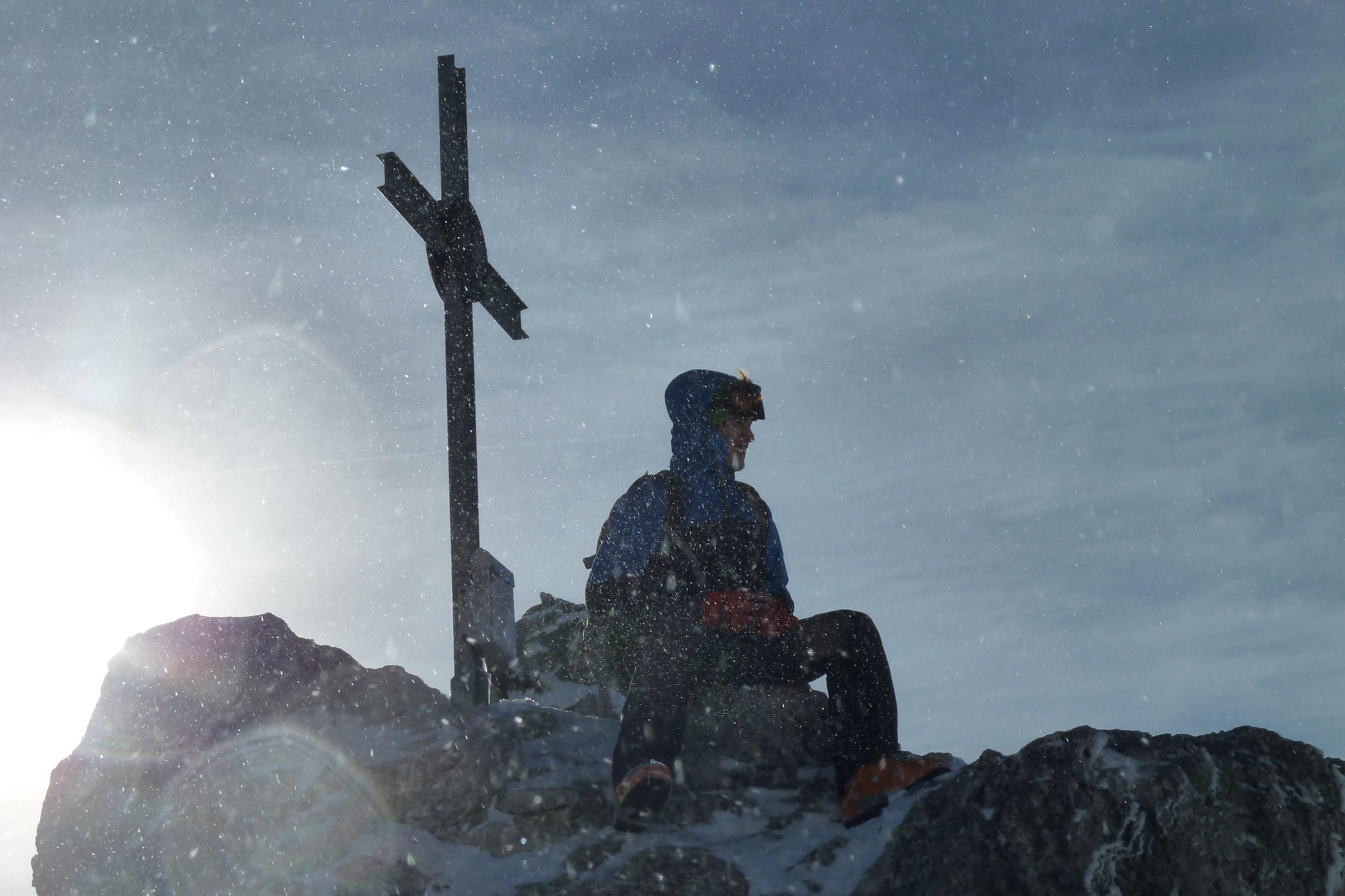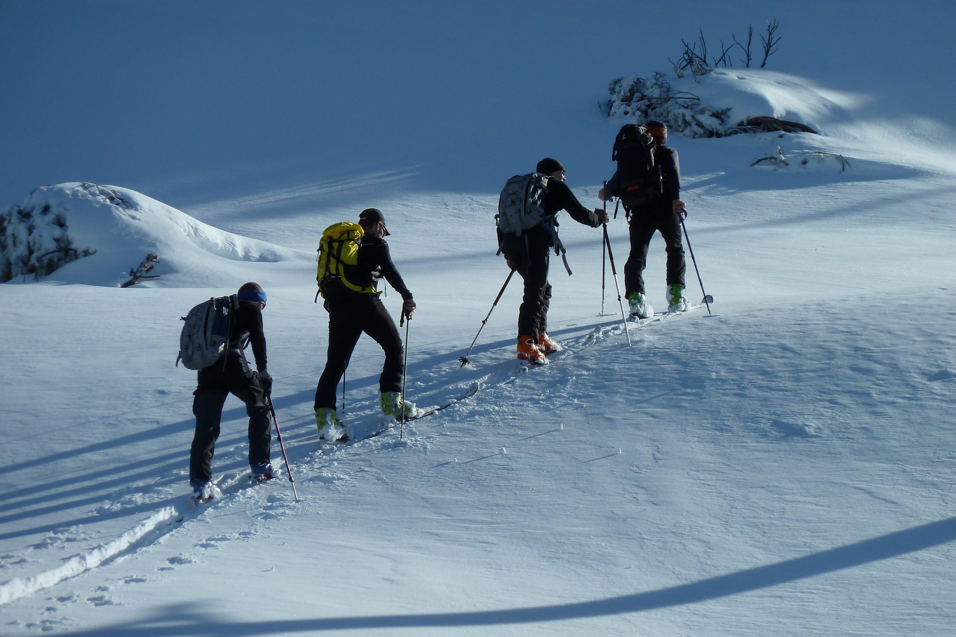 ca. 20 cm Neuschnee auf kompakter Unterlage, mit zunehmender Höhe wiederum stark windverfrachtet bzw. -bearbeitet.
