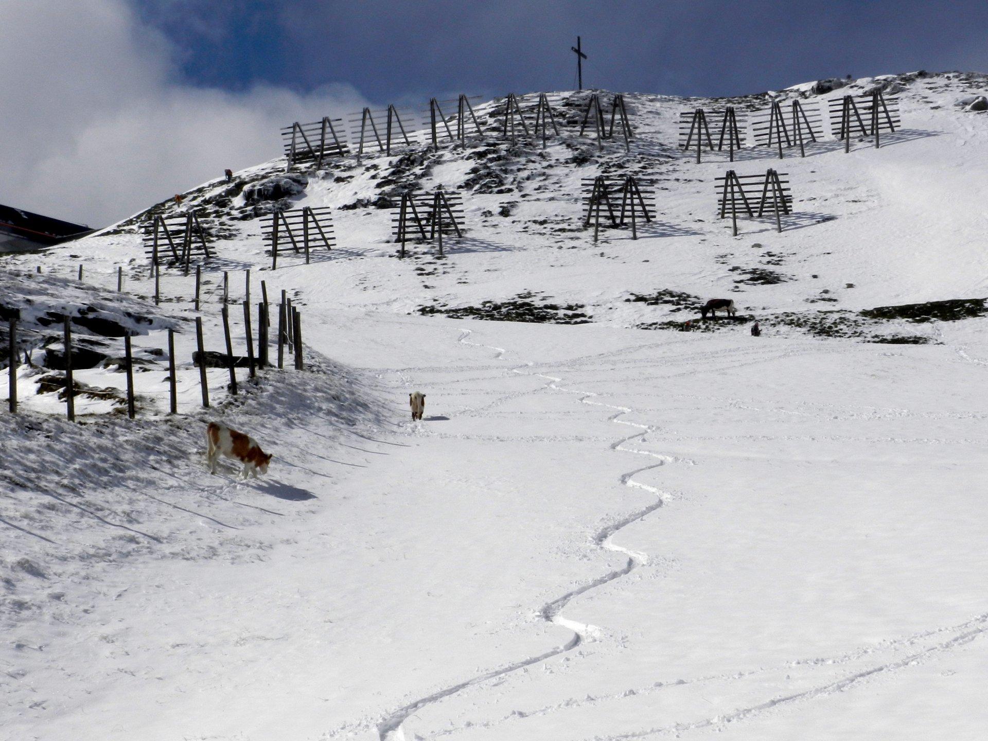 Beim ersten Schnee suchen Tourengeher hoch gelegenes Pistengebiet auf - doch am Königsleiten ziehe ich stets allein meine Spur. Mal sehen, wohin ich einen Monat später gehe, heute am 16. 10., vielleicht Resterhöhe?