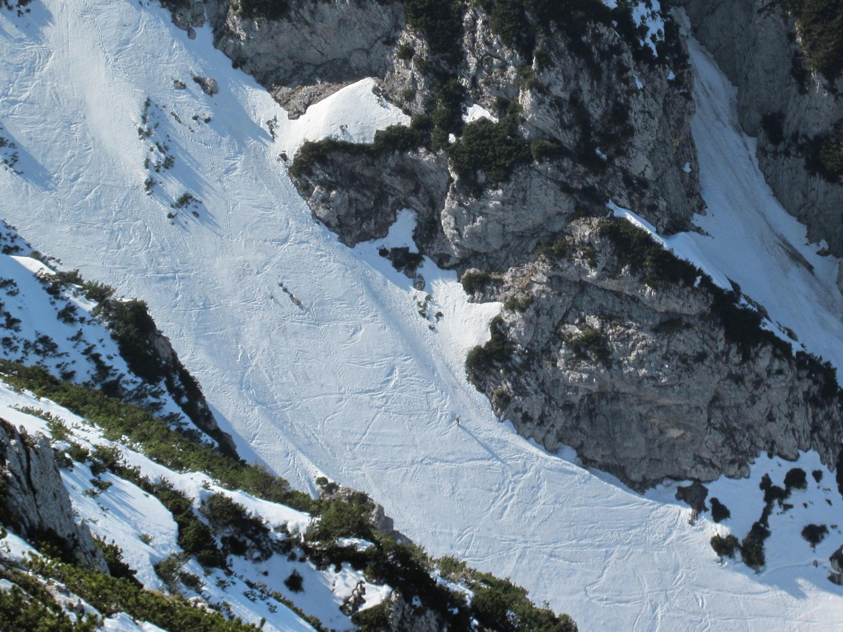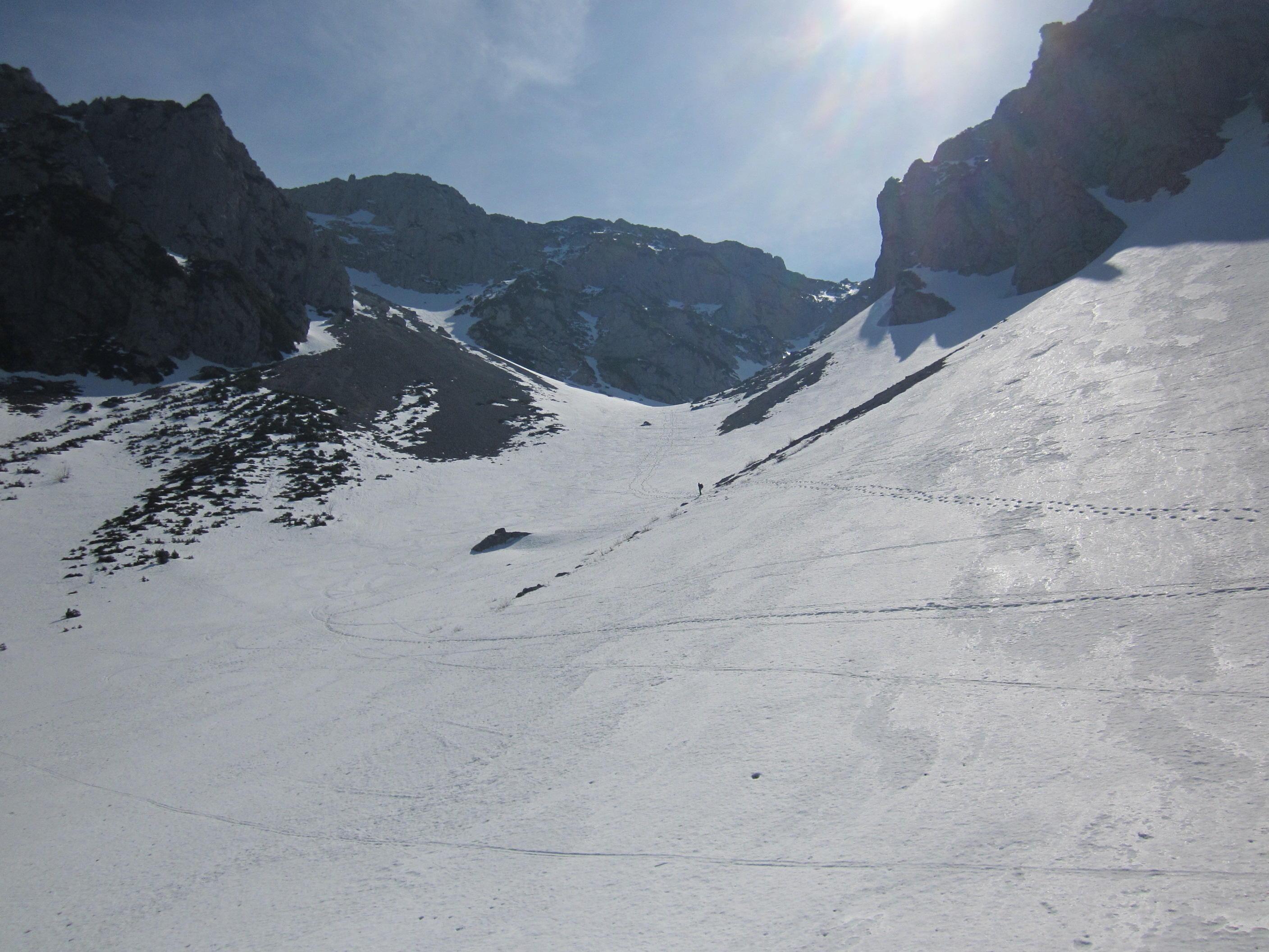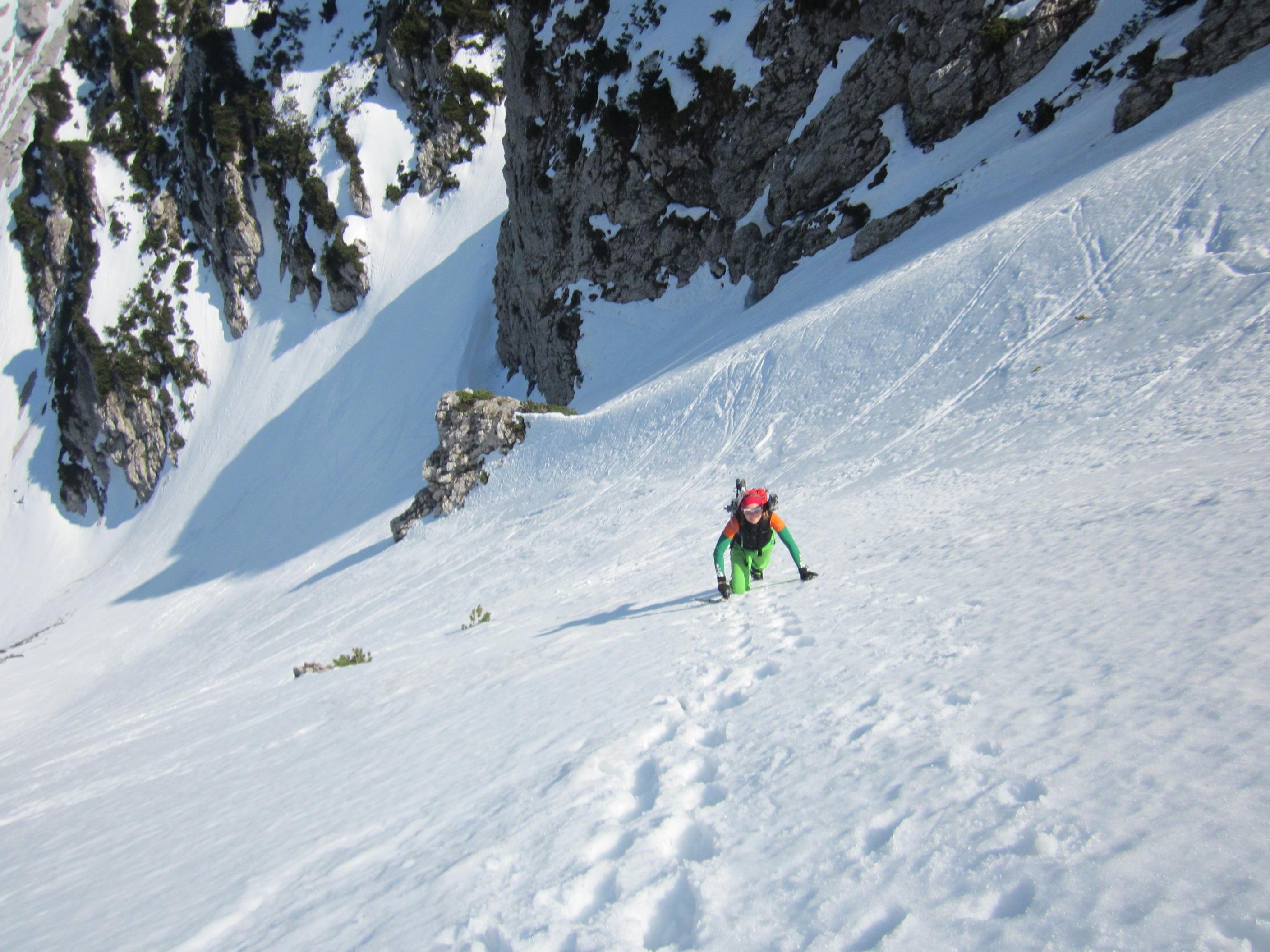 Waren um ca. 14:00 in der Scharte des Staufenkars. War perfekt zum stapfen, im sonnseitigen Steilbereich teilweise tief.