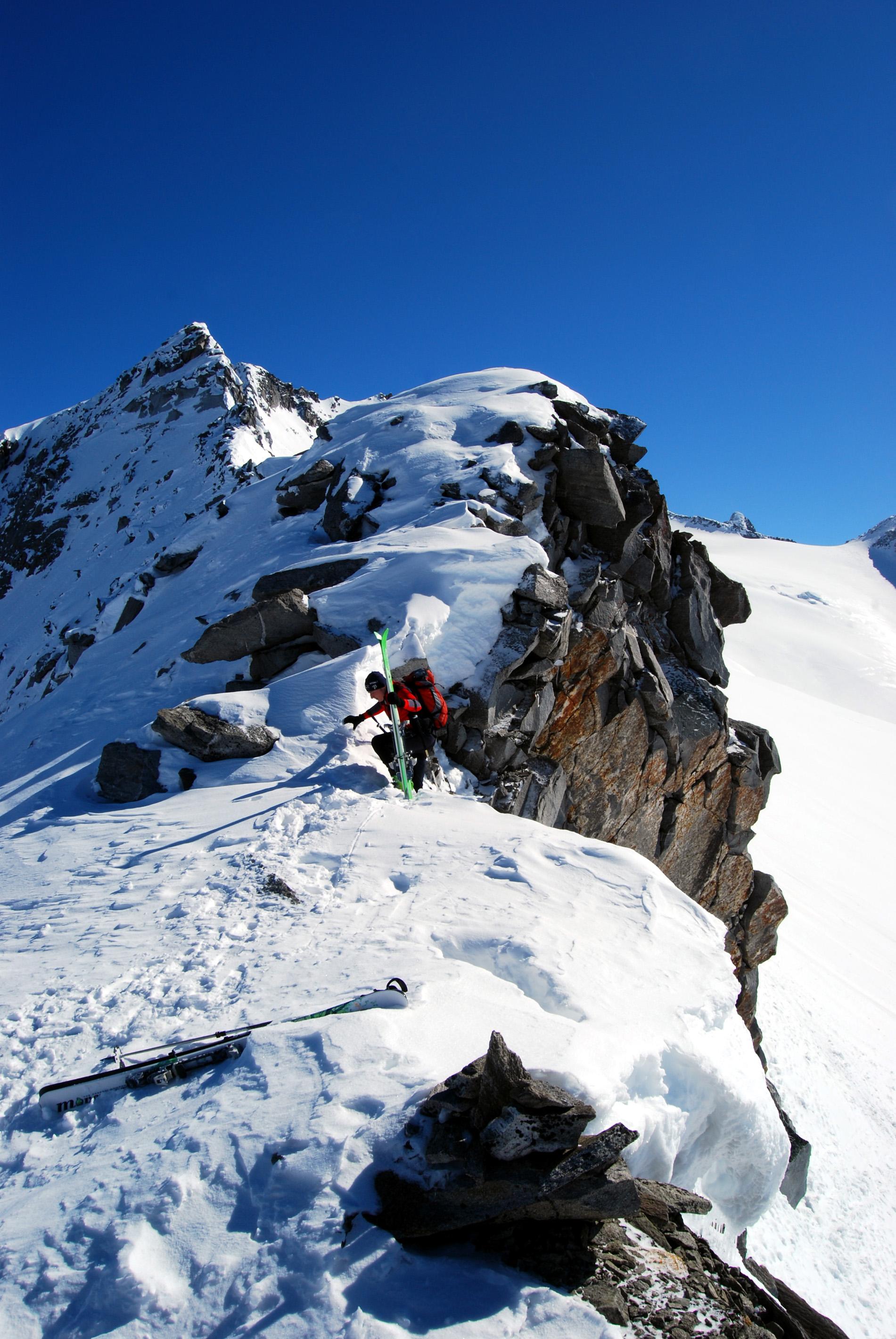 Zurück an der Scharte - im Hintergrund unser Gipfel (links)