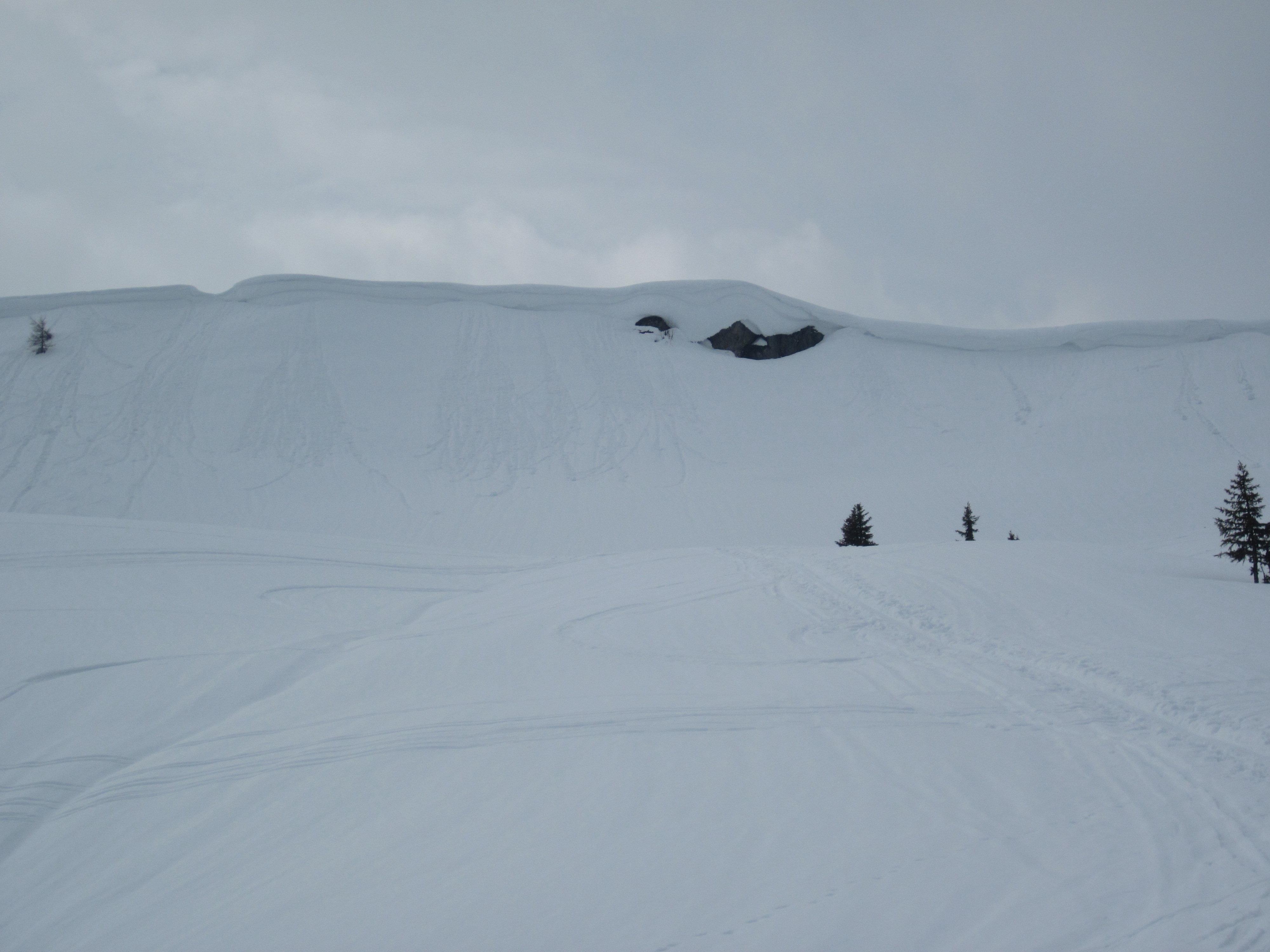 Nordabfahrt: Bin ich schon zig mal gefahren und noch nie hatte ich so ein ungutes Gefühl wie gestern. Bis zur Wechte, die sich heuer über die ganze Hangbreite (weiter im Hang abgeschwächt als Rolle) zieht wars knüppelhart. Ab der Wechte ein Harschdeckel, der beim Schwingen großflächig mit hässlichen Geräuschen gebrochen ist, darunter mindesten ca. 30 cm weiches griesliges Zeug. Nach 2/3 des Hanges muß man noch über eine ca. 1,5 m hohe Wechte steigen. Wenn da jetzt Neuschnee drauf kommt, wird sicher nicht günstiger.