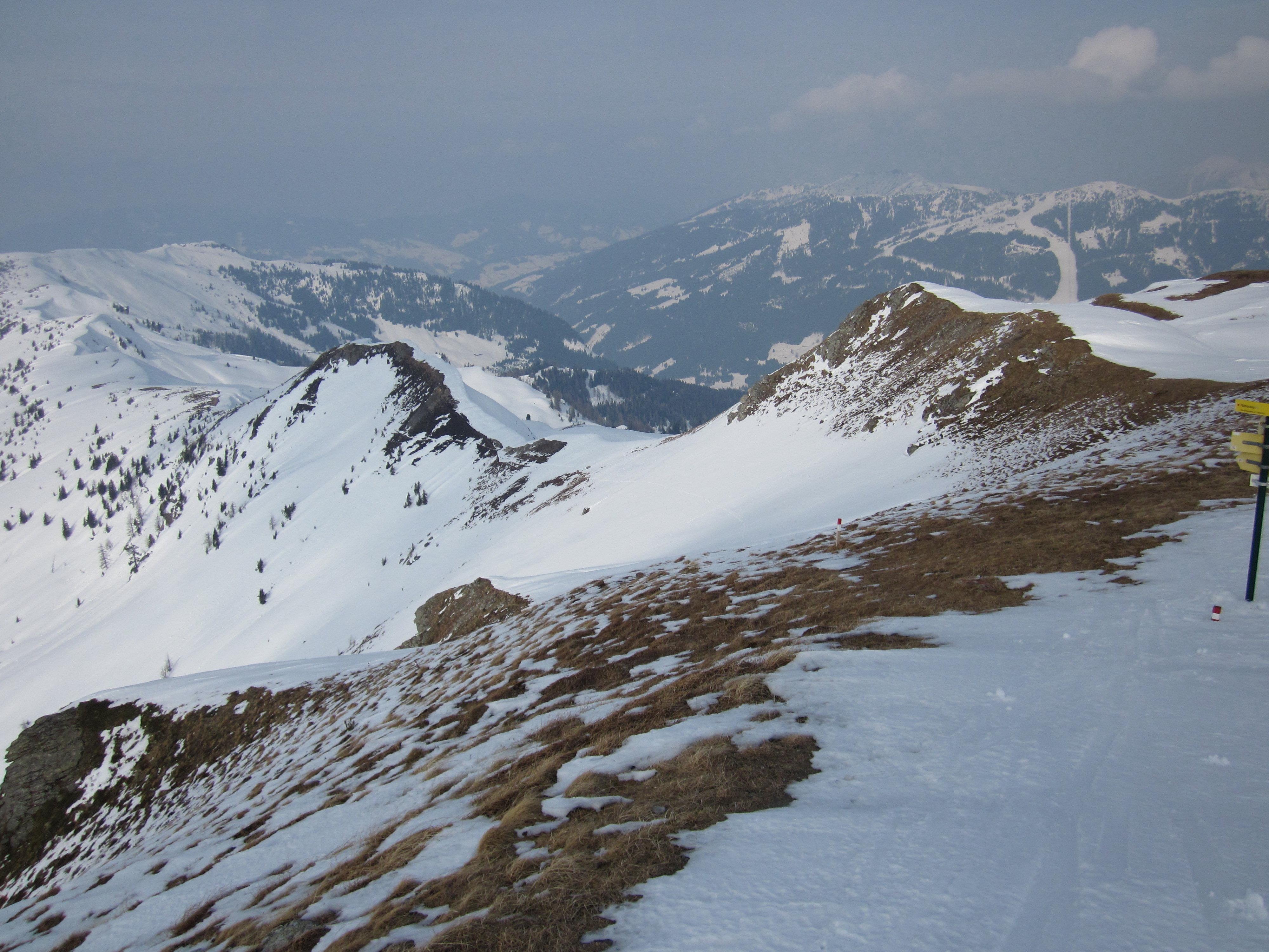 Querung des ??? (is des da Schafeberg? Da, wo die Seilsicherung drin ist): Habe ich über den Grat umgangen. Im steilsten Stück lag mir zu viel zu tiefer Schnee.