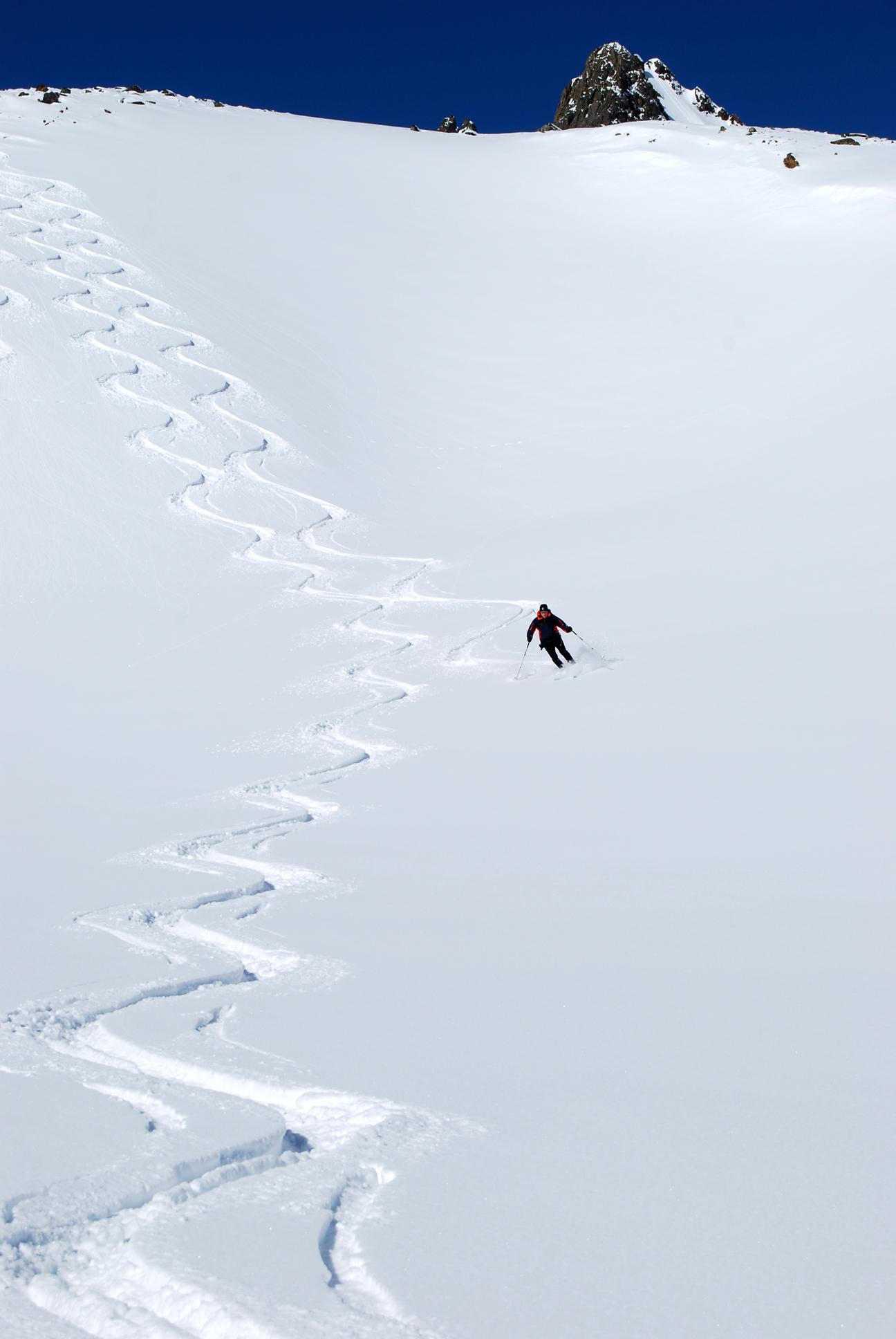 Die Schöntalspitze ist ein absoluter (leider meißtens überlaufener) Sellrain-Klassiker und da wir letzte Saison im Frühwinter 2010 nur bis zum völlig abgeblasenen Gipfelhang spurten gings heute nochmal durchs Schöntal.