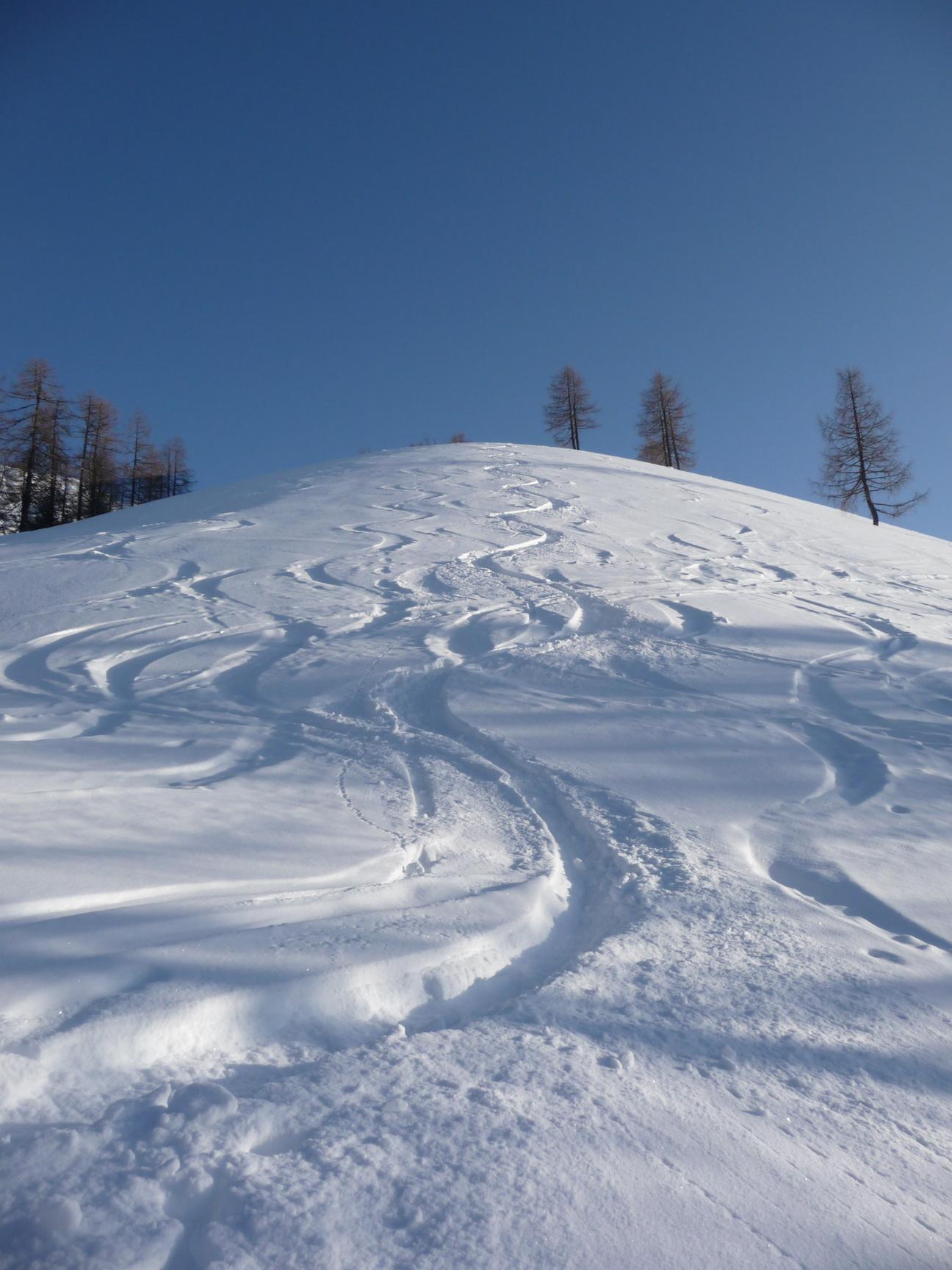 Der Schnee war überall pulvirg, oben zwar bischen abgeweht aber ab dem unterm Feld waren ca. 25 cm Pulver.