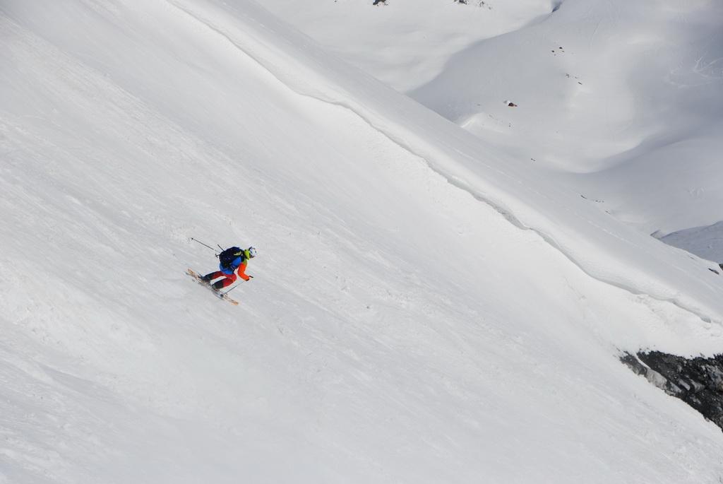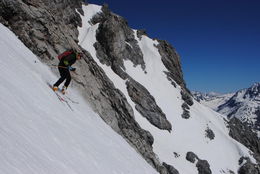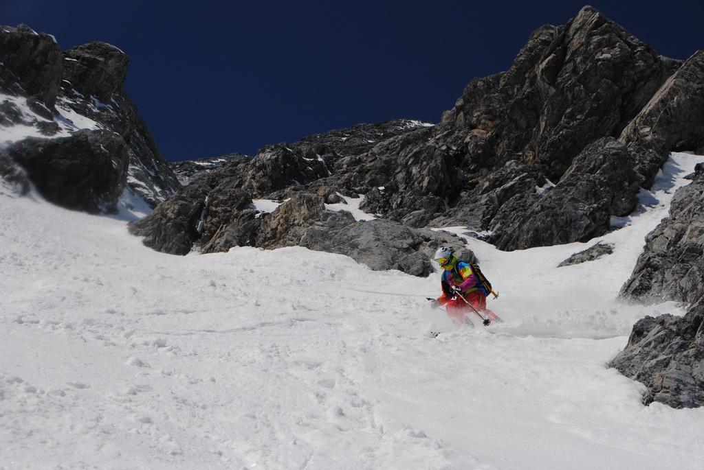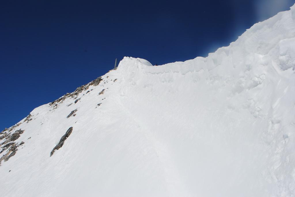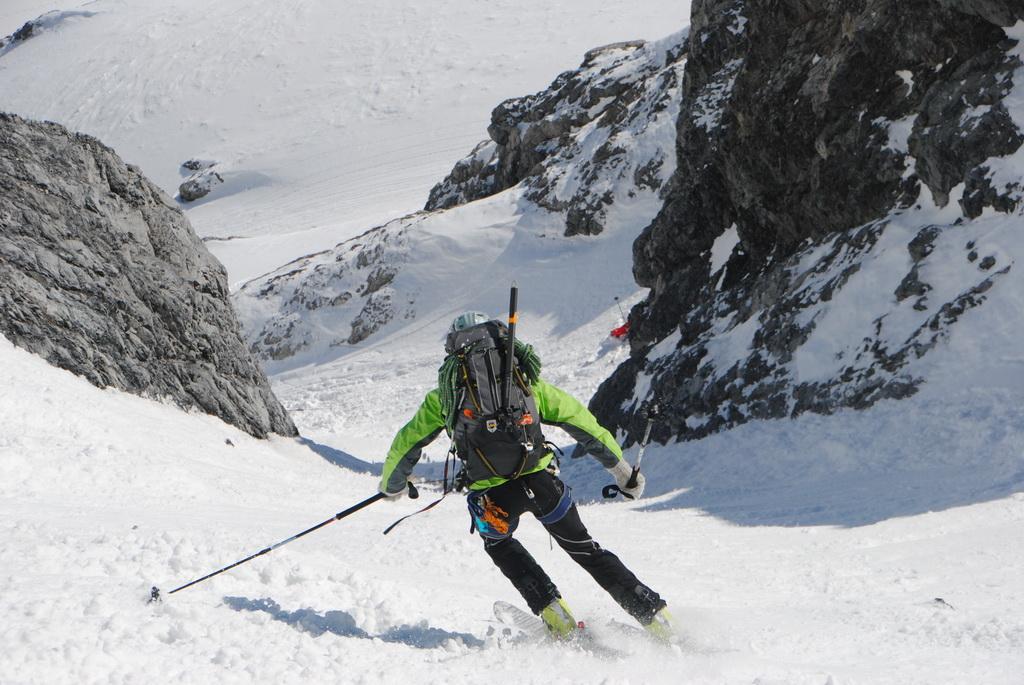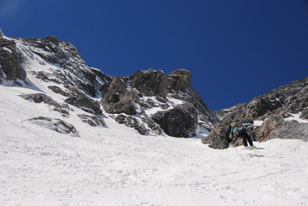 Zur Zeit perfekte Verhältnisse in der Ostwand.-rinne. Der gesamte Aufstieg ist gut zu stapfen und eisfrei. Bei der Abfahrt stellt sich gleich perfekter Firn ein und heute war die Abfahrt direkt vom Gipfelkreuz möglich, wobei das die ersten Meter unterhalb des Gipfelkreuzes aufgrund von Schneemangel bald nicht mehr möglich sein wird .