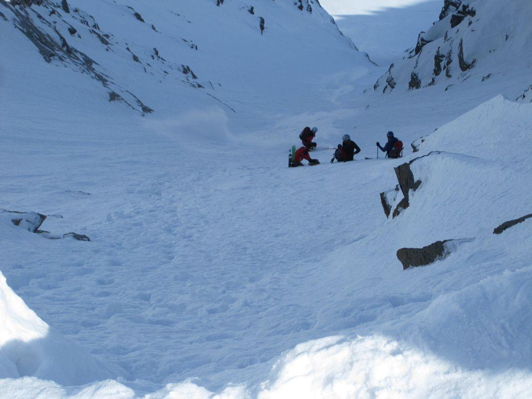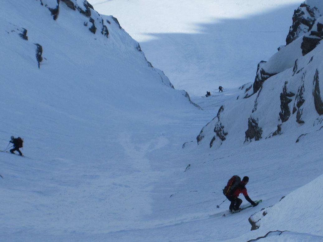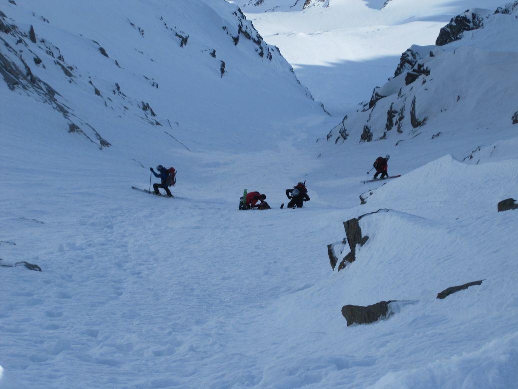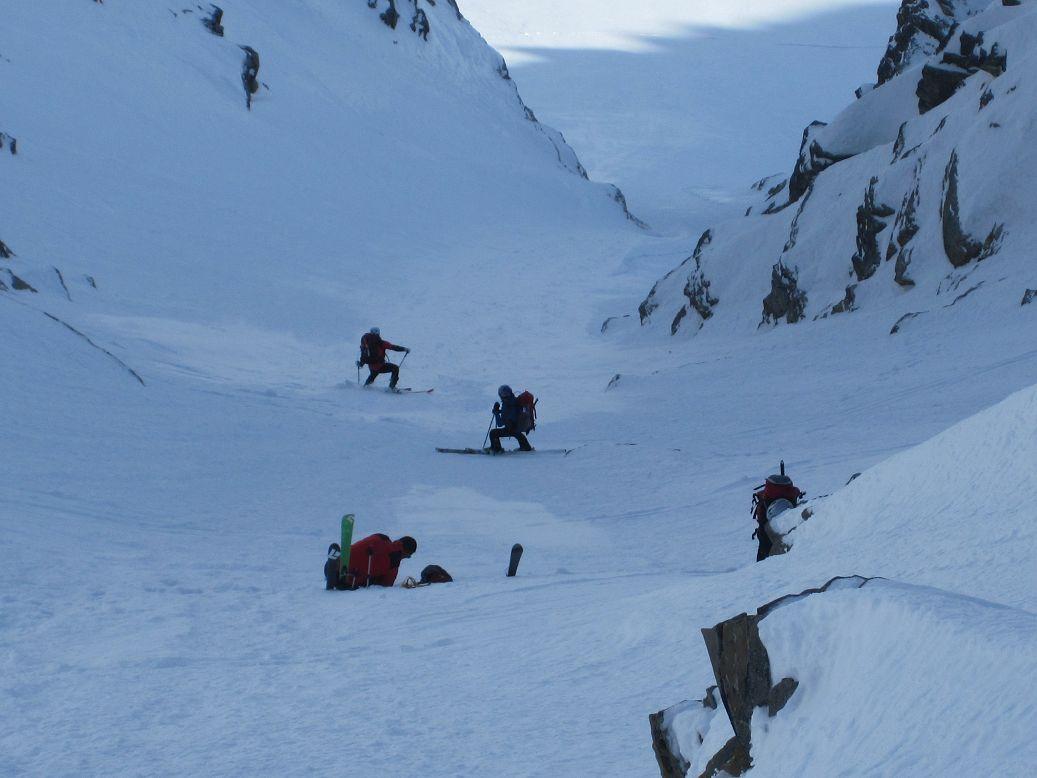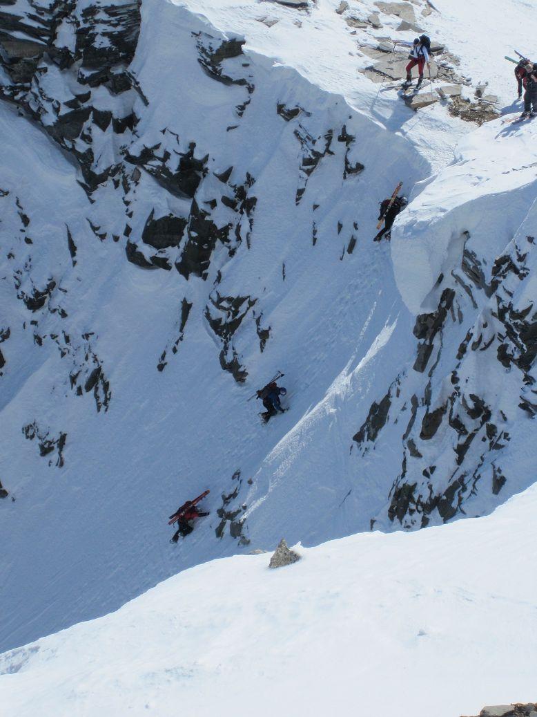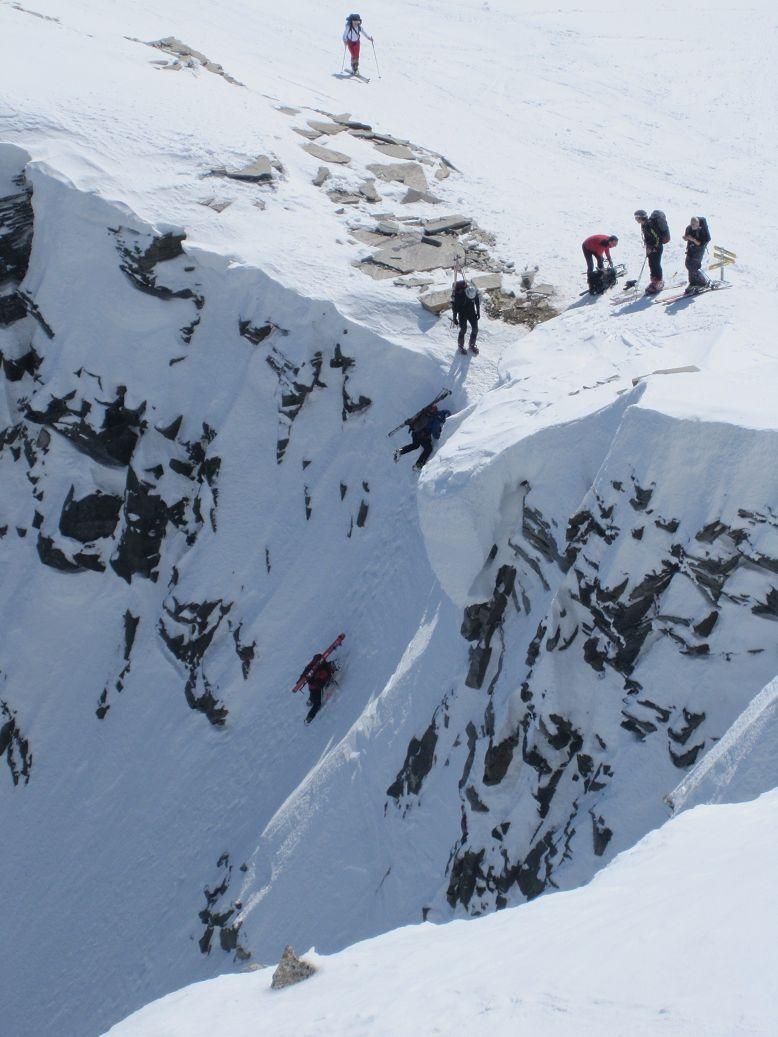 <p>In Anlehnung an den Eintrag von Andrea Heider ( Hocharn ) die 4 Rinnen-Spezialisten am Einstieg der Sonnblick Gipfelrinne - von oben abgebildet.