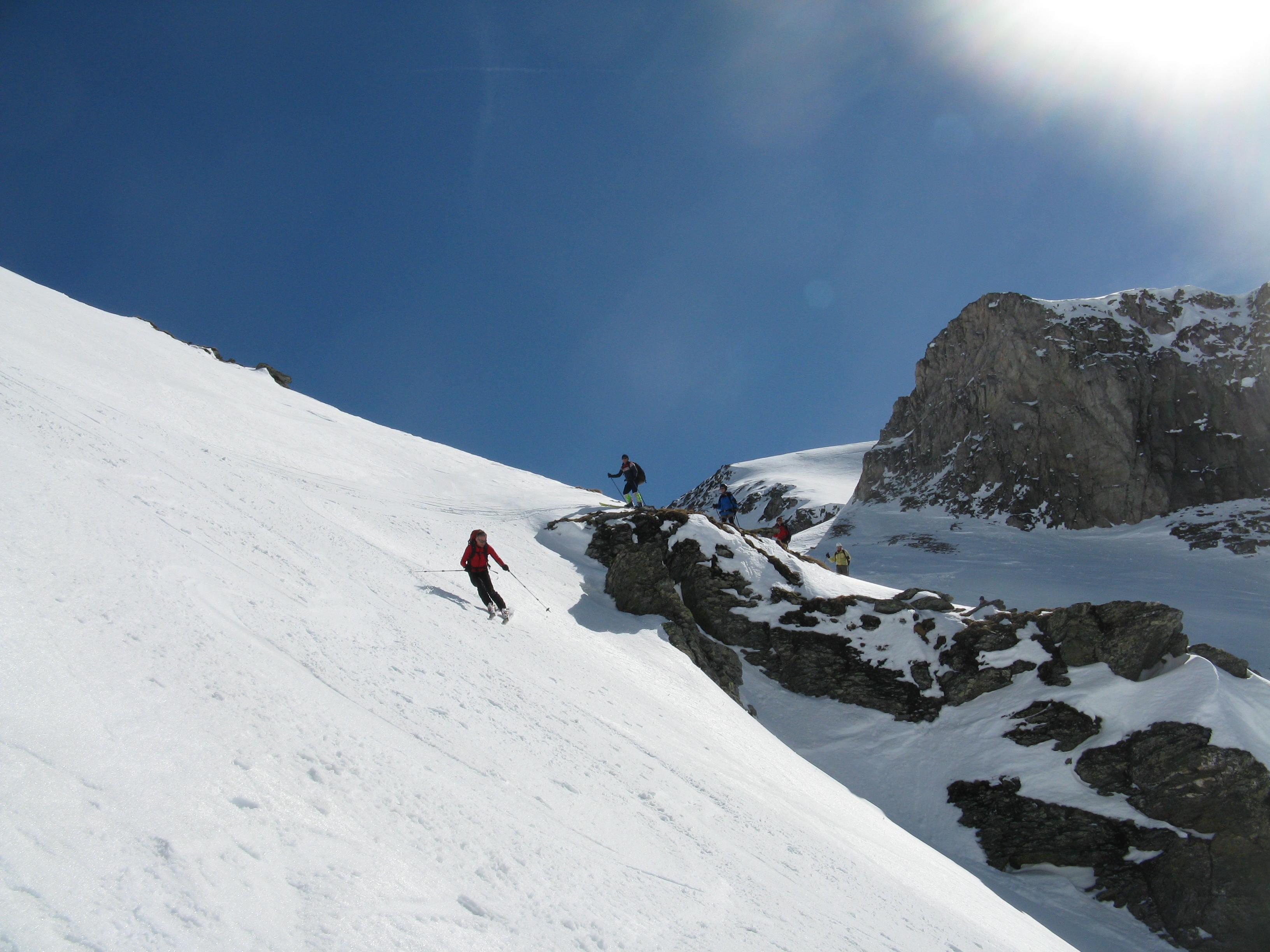 Grenzgang zwischen Salzburg und Kärnten Zum Talschluß des Nassfelds gelangt man zur Zeit nur zu Fuß mit einigen kurzen aperen Stellen.Die kurze steile Rinne vom Eselkar zum niederen Tauern heute unproblematisch.Firnabfahrt zu den Böden der Jamnigalm,wiederaufstieg zur Hagener Hütte und Firnabfahrt ins Nassfeld.Fazit:Vormittag Firn nach Süden ,Mittags Firn nach Norden ,schöne Abfahrtshänge und wenig Skitourengeher unterwegs Mittags einige kleine Nassschneelawinen aus den besonnten Felswänden des Geiselkopfs beobachtet.