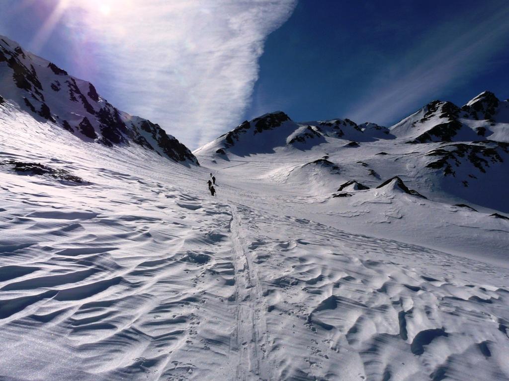 Anstrengende Tour bedingt durch starke Sonneneinstrahlung und heikle Schneeverhältnisse, gewaltige landschaftliche Eindrücke,