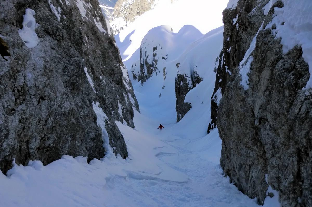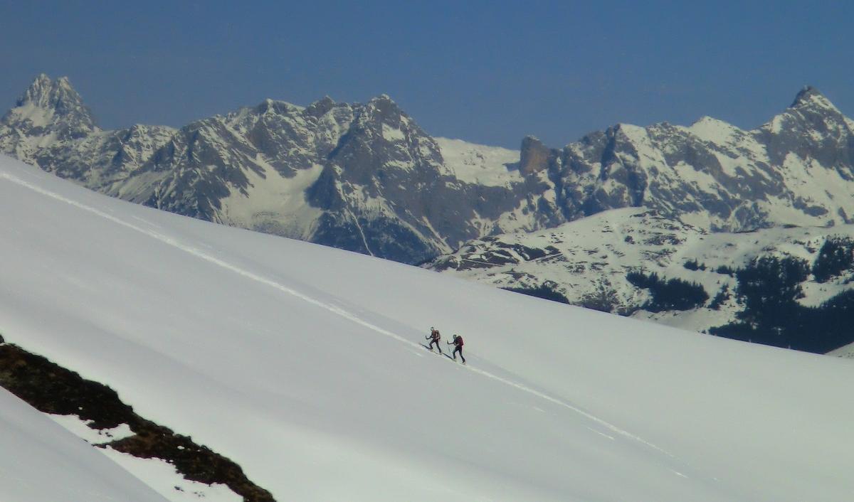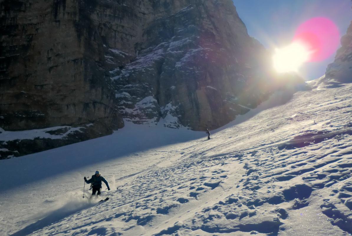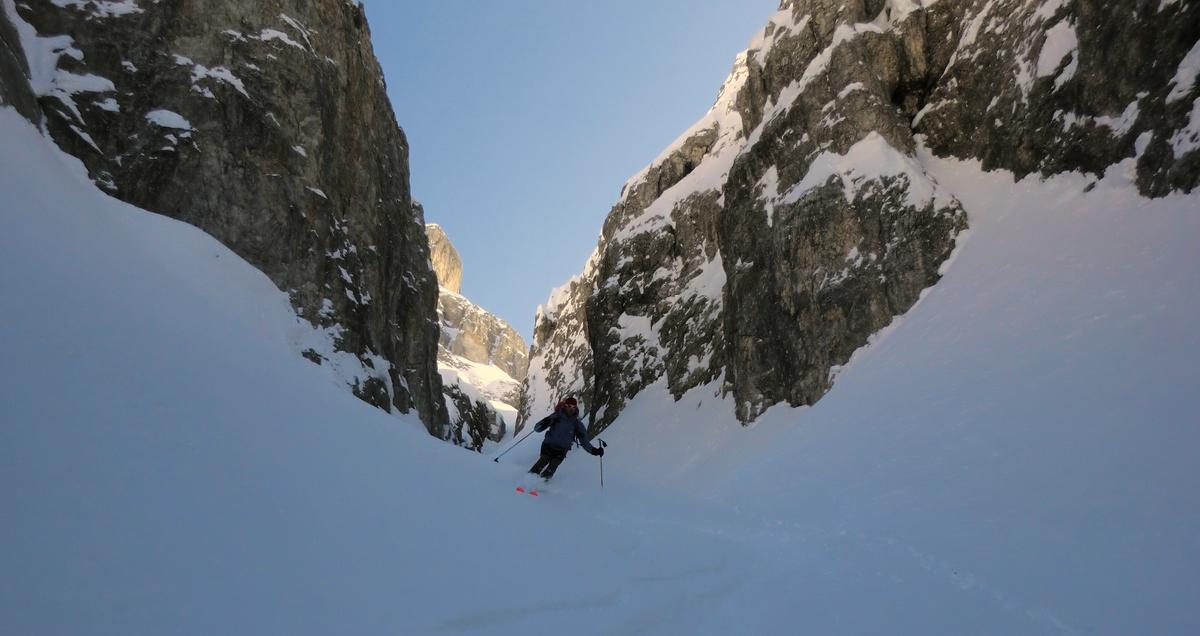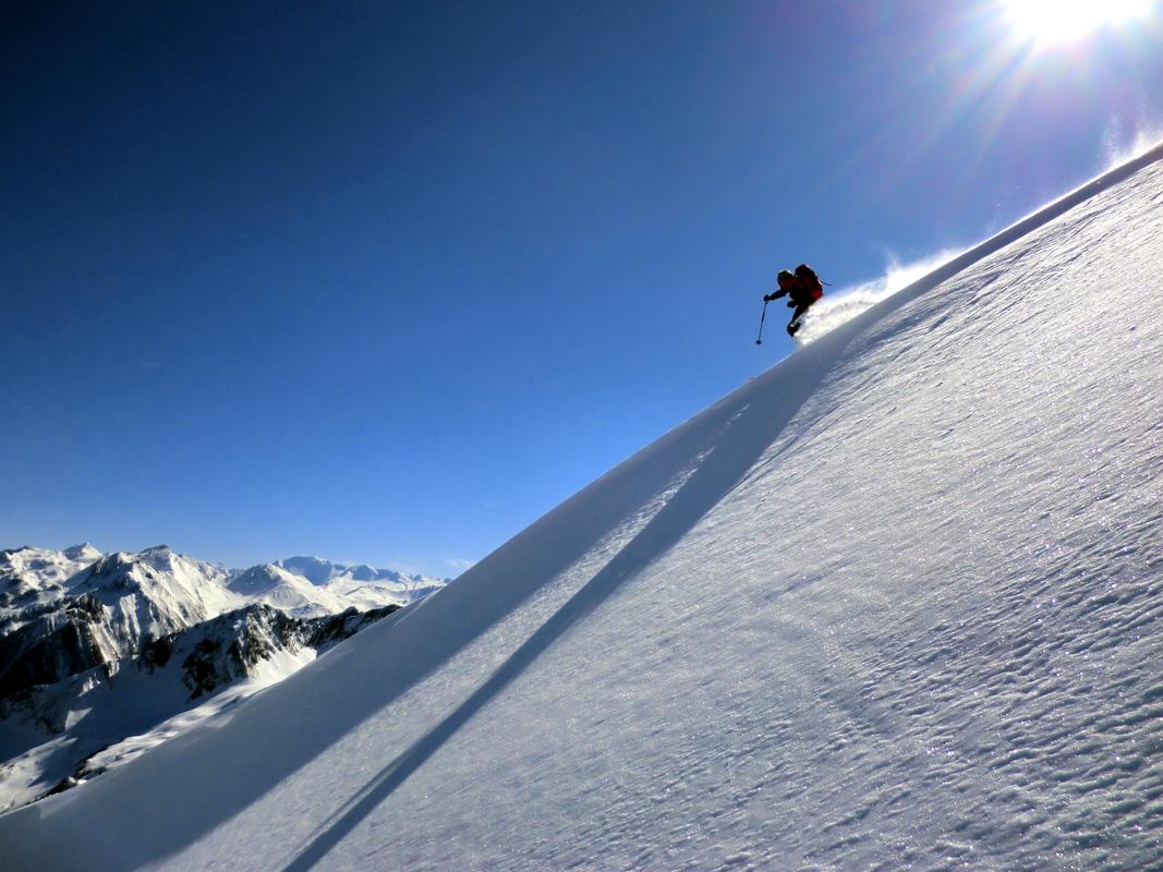 Verhältnisse: Optimale Bedingungen, nordseitig meist spannungsfreier, später gesetzter Pulver, südseitig im Laufe der Woche Firnverhältnisse. Wenig Wind und vor allem jeden Tag schönes Wetter.