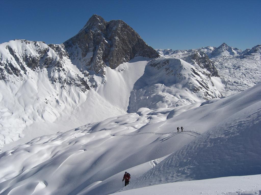 Von der Großen Reib`n (Aufstieg von Funtensee Richtung Dießbacheck) waren keine Spuren erkennbar, dem Ledererkar vom Funtenseetauern würde noch einiger Schnee guttun, Hundstodreib ist gespurt.