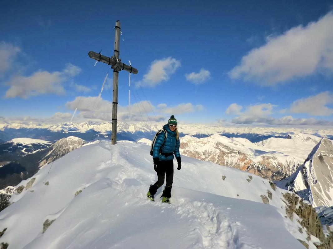 Verhältnisse: Ca. 15 cm Neuschnee auf meist tragender Altschneedecke. Unter dem Harschdeckel befindet sich häufig aufgebauter Schwimmschnee. Die Schneelage ist insgesamt ausreichend bzw. für Nordalpengeher mehr als gut. Südseitig ist der Schnee der letzten Schneefallperiode (17.02) schon tragfähig umgwandelt oder auch Bruchharsch zu finden.