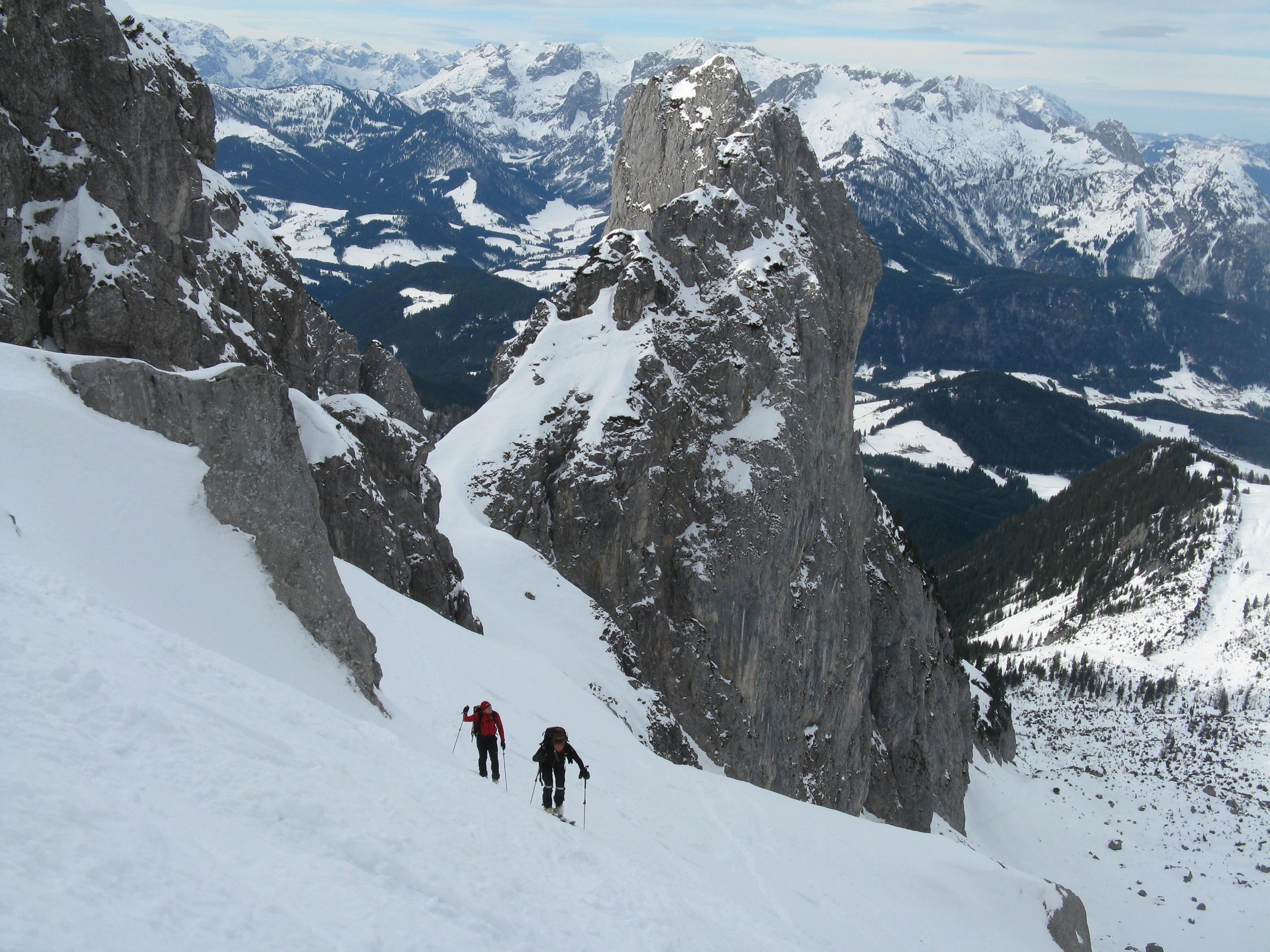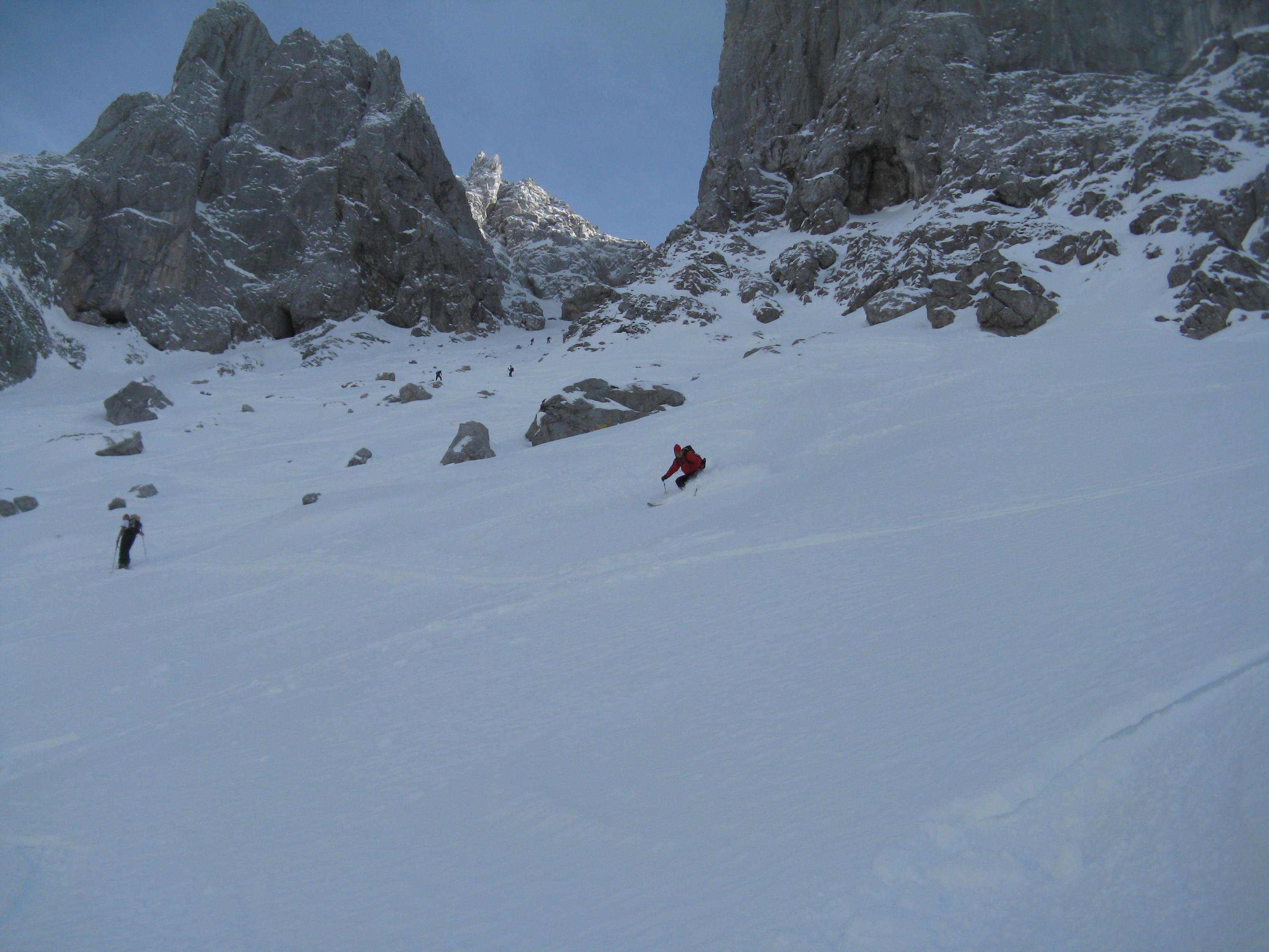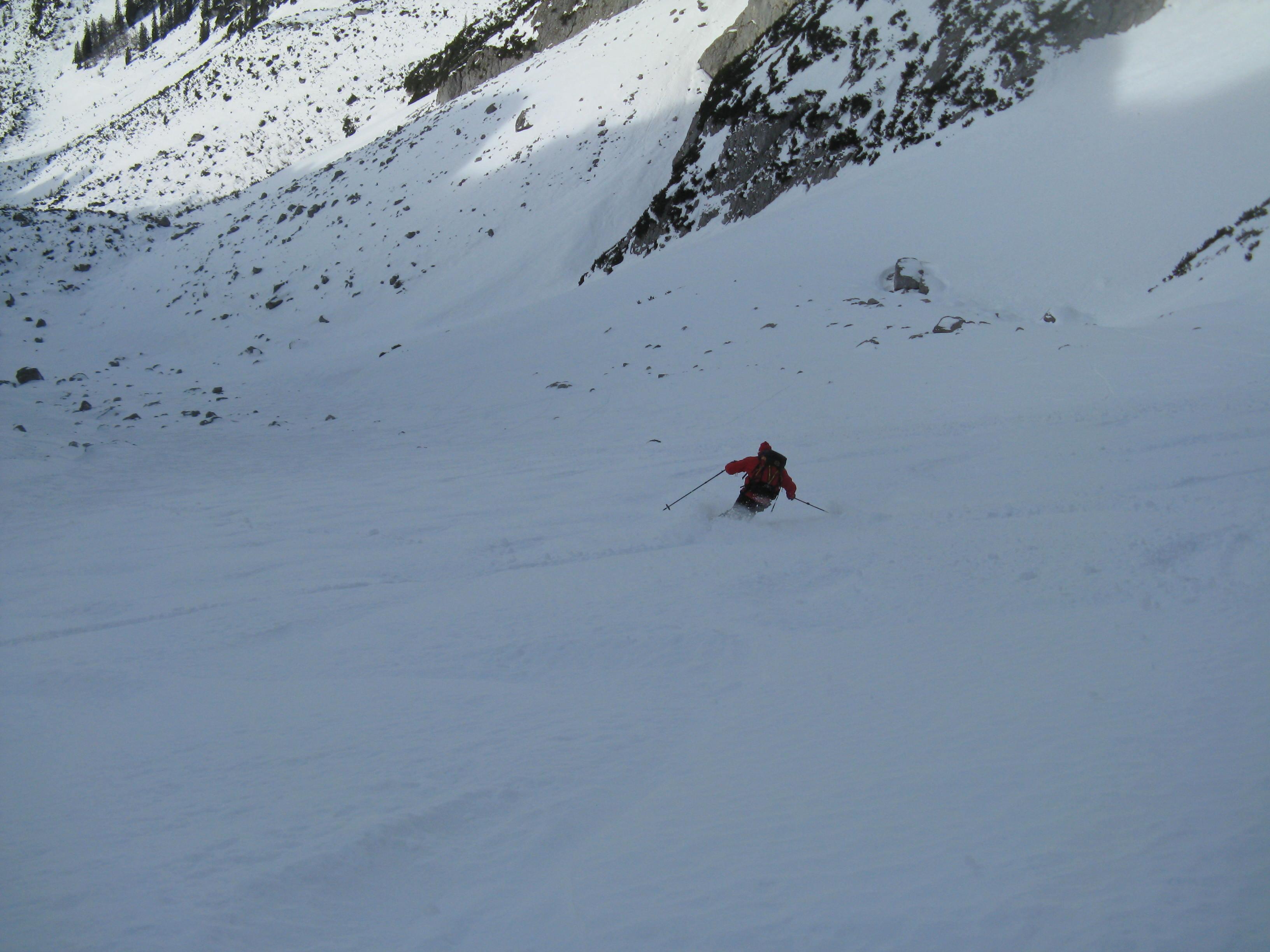Auf der Suche nach Pulverschnee führte uns Martins Spührsinn ins Stuhlloch.Stabile Verhältnisse und ausreichend unverspurte Flächen boten im Stuhllocheine tolle Abfahrt. Die weitere Abfahrt zum Pommer gestaltete sich etwas wechselhaft.