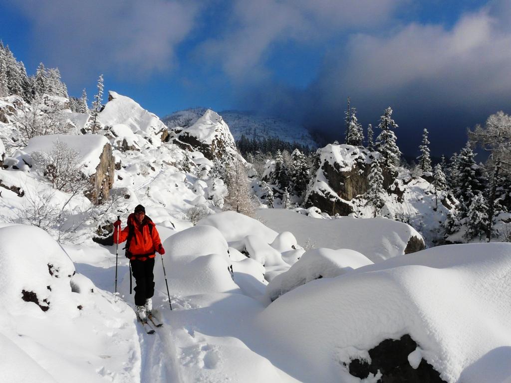 Leichte Skitour (Mix aus Skitour und Skiwanderung), landschaftlich vor allem im Bereich der Zwerchwand sehr eindrucksvoll.