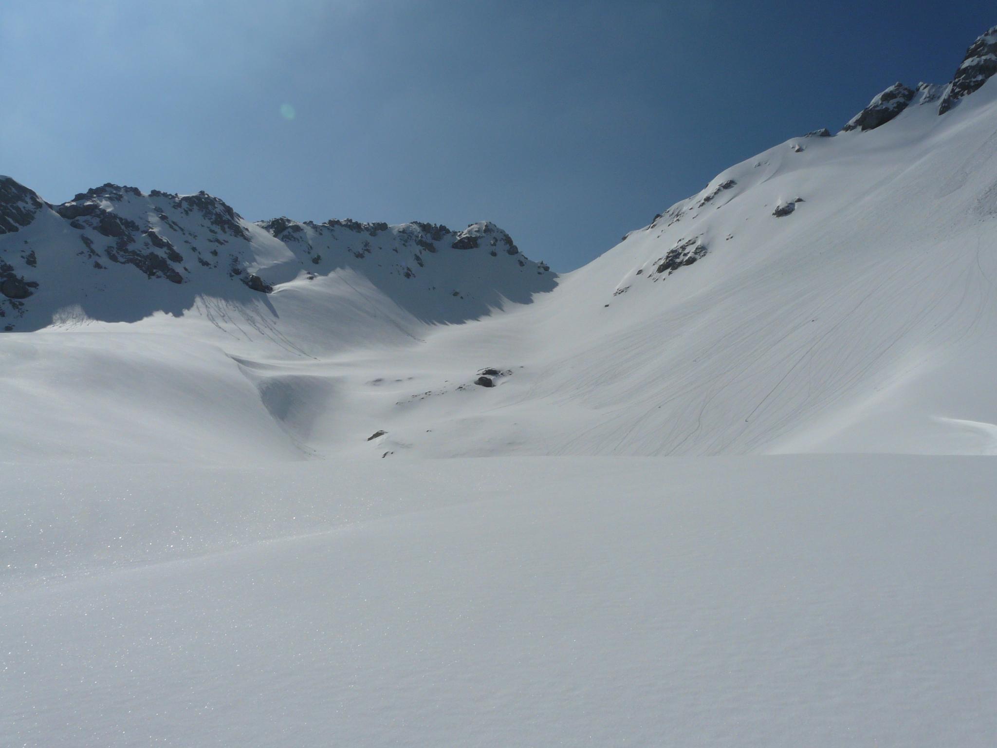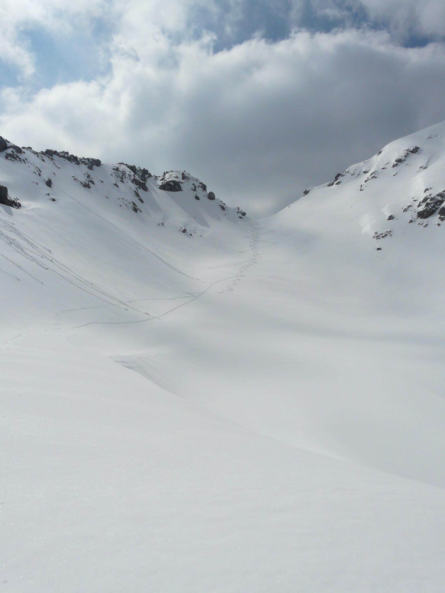 Heute suchte ich die Einsamkeit und fand sie im Sittersbachtal. AP Parkplatz in Hintersee 800m bei Ramsau. Wahr heute alleine unterwegs und begegnete den ganzen Tag keinem Menschen. Ski mußten durch eine steile Waldstufe bis auf 1300m getragen werden. Wetter und Schnee sehr gut ab Mittag Quellbewölkung wie vorhergesagt. Am heutigen Tag keine Lawinetätigkeit, die Neuschneerutsche der letzen Tage hatten keine große Reichweite. Wetter angenehm warm, leicht windig. Wollte eigendlich aufs Steintalhörndl gehen bin dann aber wegen Schneemangel im Gipfelhang auf die Hochfeldscharte gegangen.