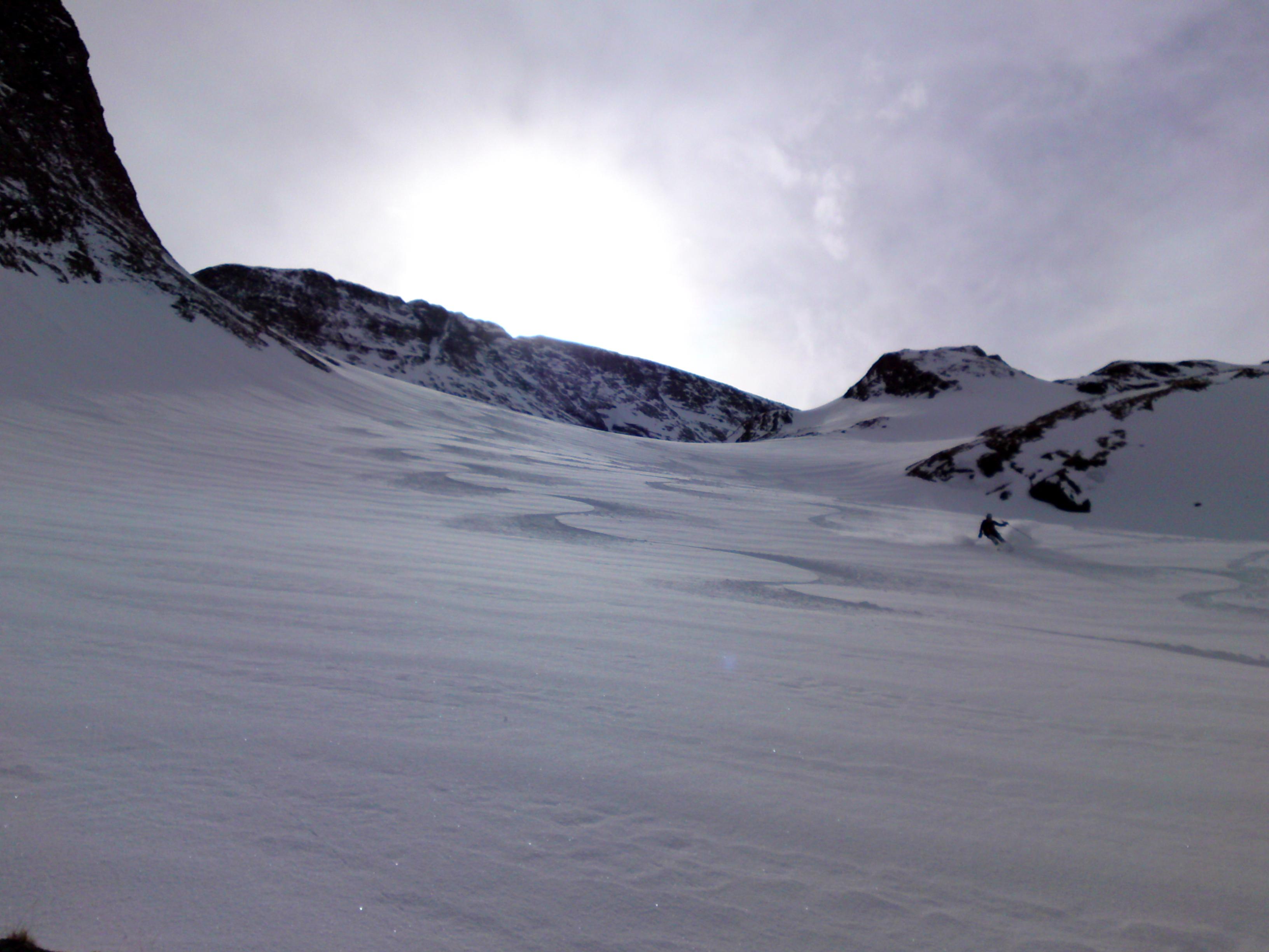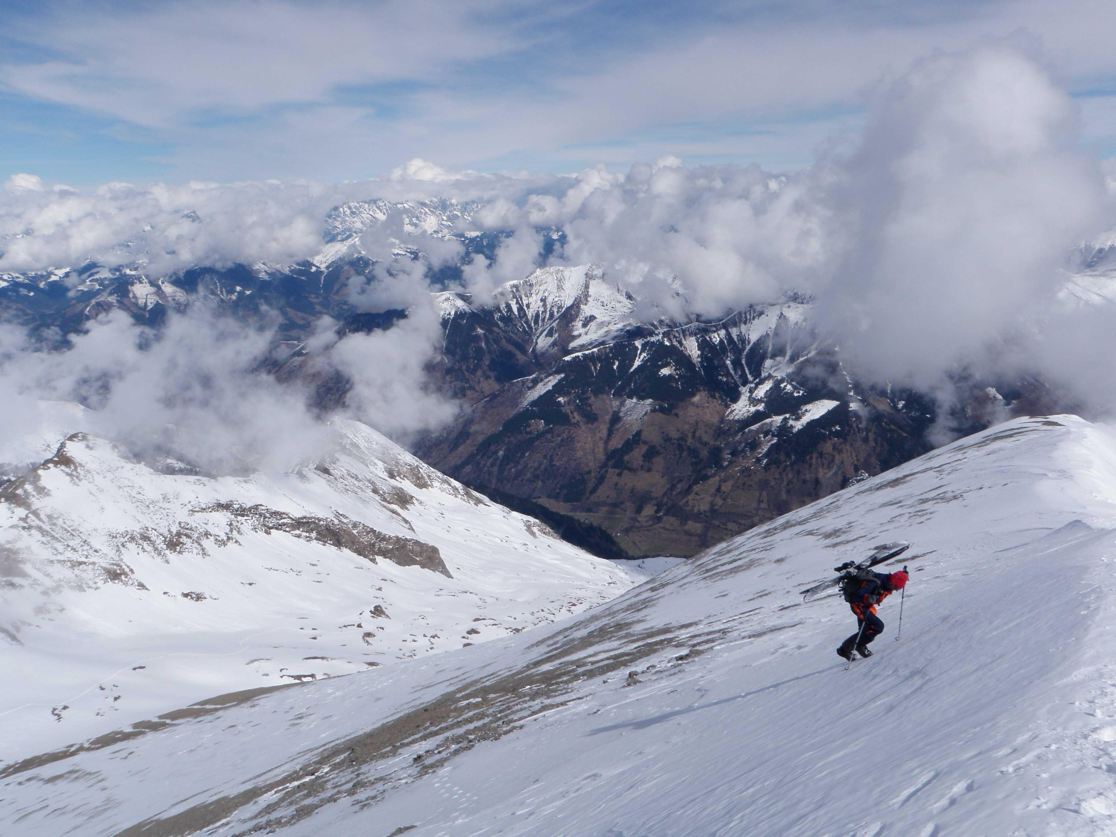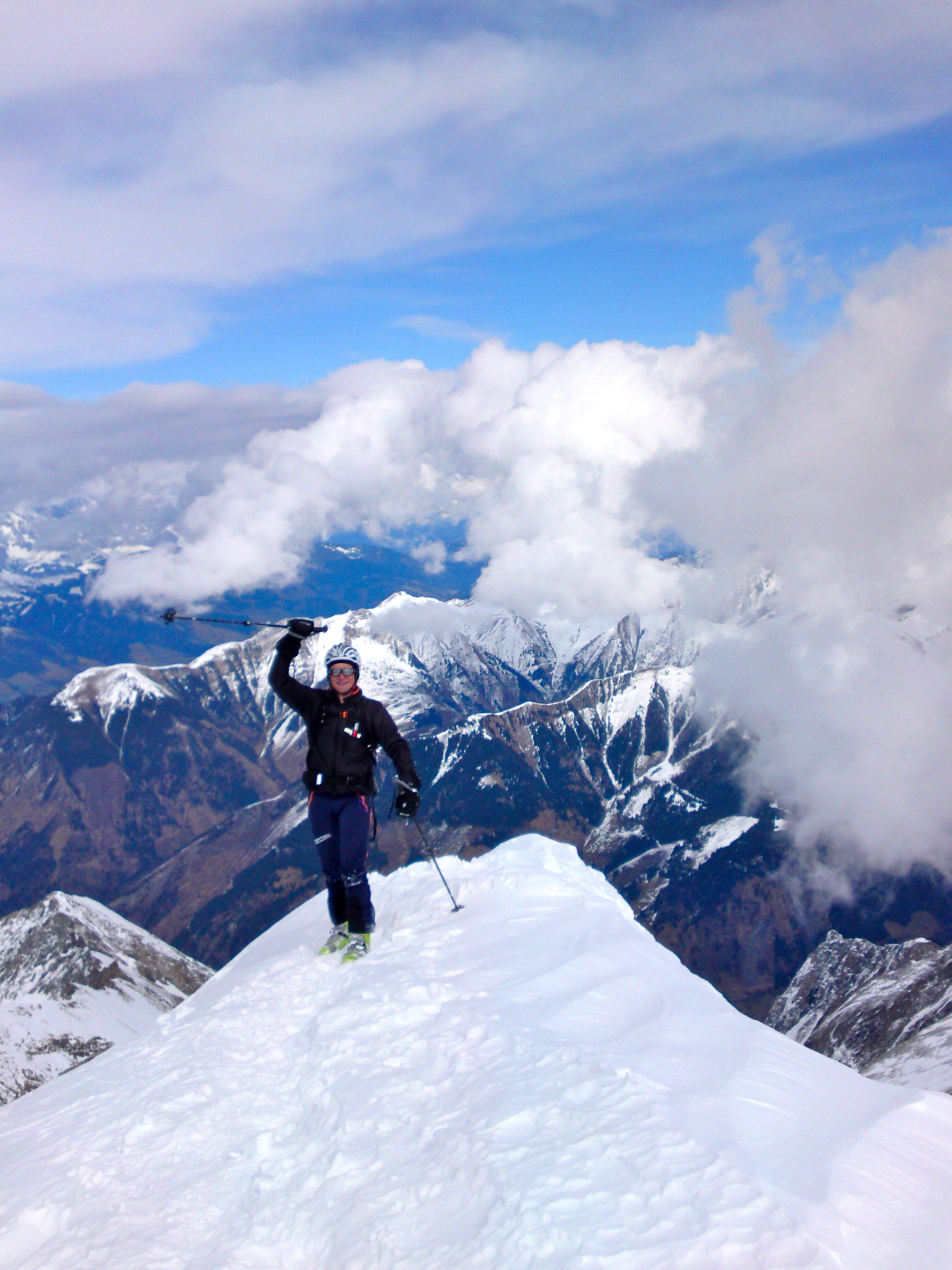 ....nachdem das "Sauwetter" der Nacht rasch abgezogen ist, machten wir uns heute von Fusch aus auf den Weg zum Zwingkopf. Etwa 20min. musste man per pedes im Nebel bewältigen bevor es bei Sonnenschein und frühlingshaften Bedingungen zügig gen Gipfel ging. Bis zur Zwingspitze war das einizige Problem das Anstollen der Felle, ansonsten herrschten perfekte Bedingungen (auch dank 2er Bergkameraden, die bereits früher aufgebrochen sind und gespurt hatten). Von der Zwingspitze erfolgte dann der Aufstieg wieder zu Fuß durch loses Geröll bis zum Grad, danach weiter bis zum Gipfel. Diese Unternehmung erforderte einiges an Trittsicherheit! Der Weg zur Schneespitze bzw. zum Hohen Tenn ist nur mit Steigeisen zu bewältigen (die wir nicht im Gepäck hatten und daher die Tour hier beendeten). Die Abfahrt erfolgte bis zu den Almen in feinstem Pulver (ca. 15-20cm neu auf harschtigem Untergrund). Danach folgten ein riesiger Lawinenkegel und tiefster Sumpf sowie ein paar Minuten Fußmarsch.