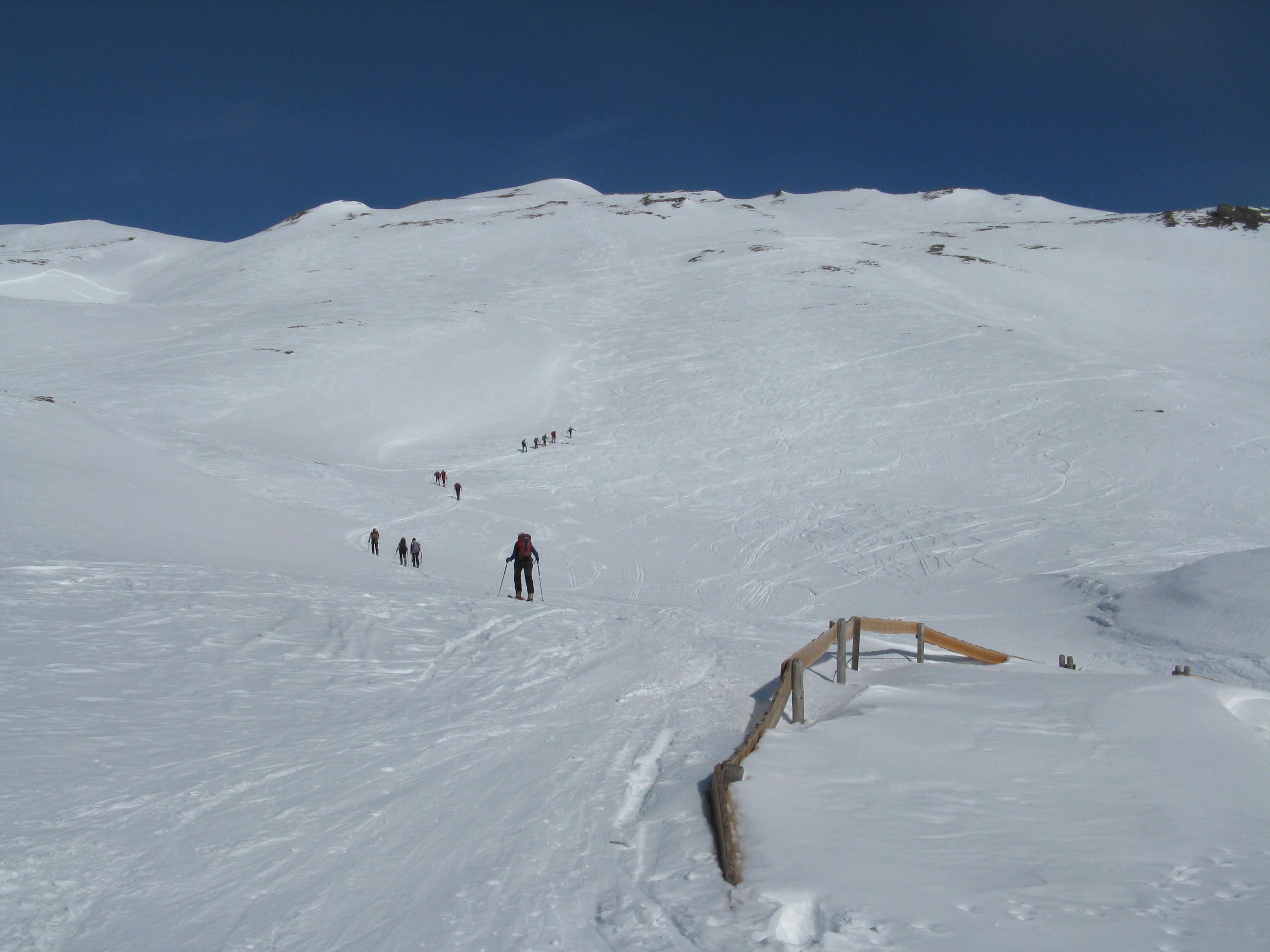 Auf der Sonnseite des Astentales herschen bei frühem Aufbruch und rechtzeiger Abfahrt gute und sichere Schneeverhältnisse