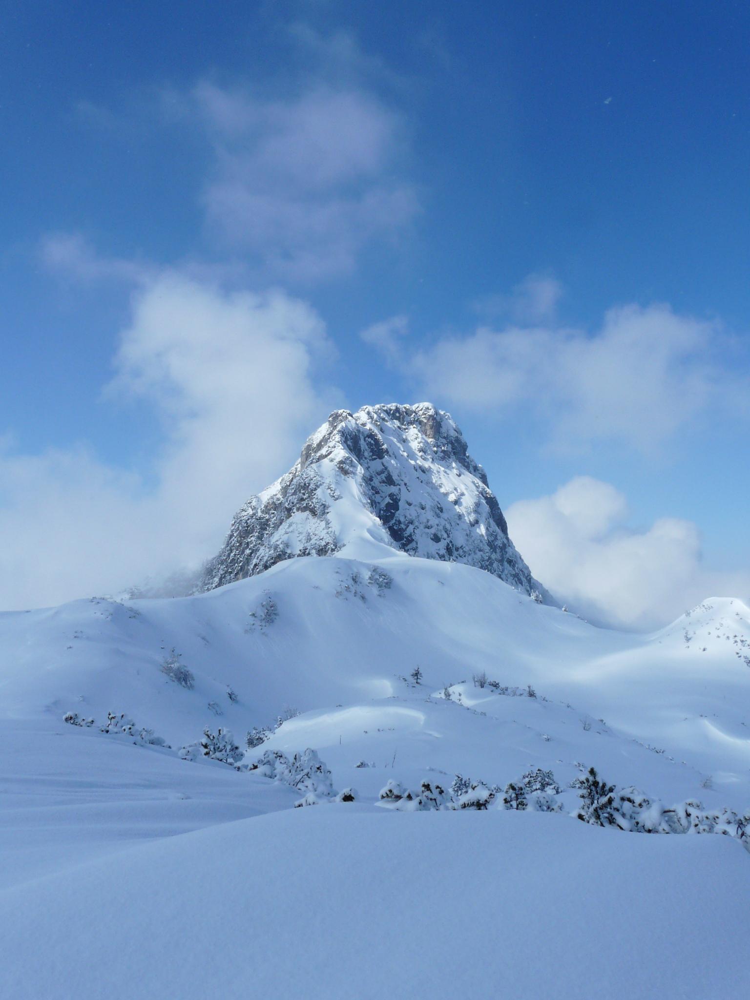 AP. Parkplatz in Hintertal. Heute Schneekettenplicht ab Weißbach. Aufstieg auf der Forststraße bis Farmauwiesen, dann rechts durch den Hochwald. Bereits nach erreichen der baumfreien Almwiesen hat man das Ziel immer vor sich. Es wahr heute ein kalter ( am Parkplatz -7°C ) schöner Wintertag mit viel Pulverschnee.
