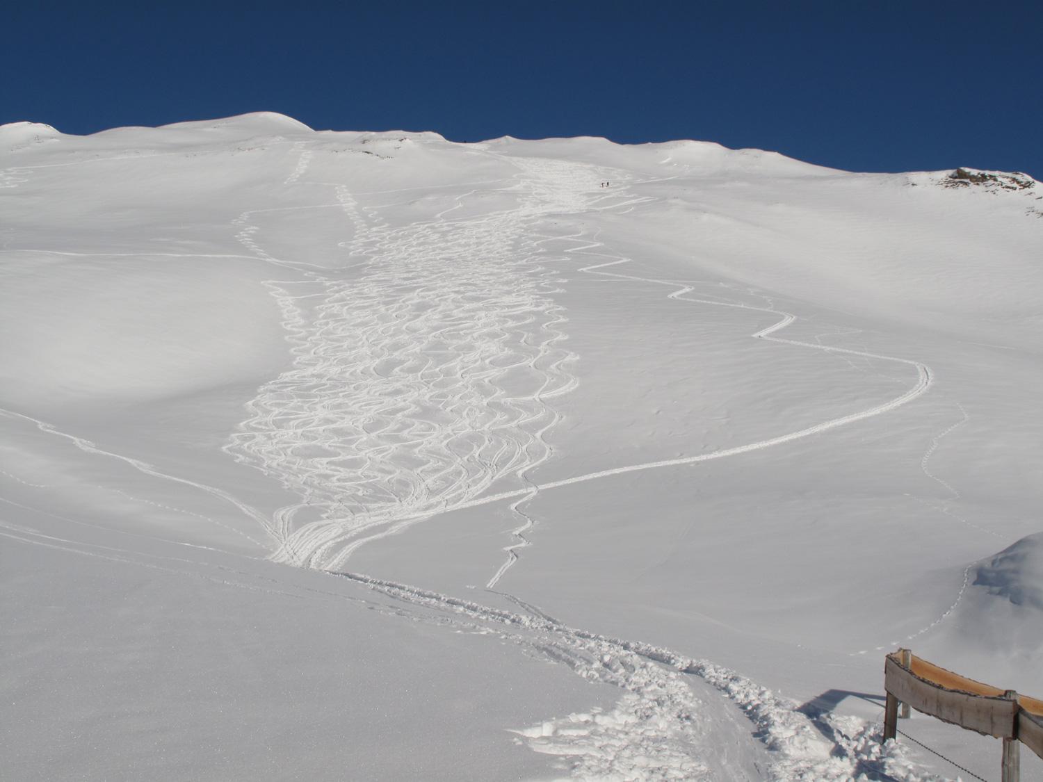 Lawine: An scheinbar harmlosen Hängen gab es eizelne Schneebretter.