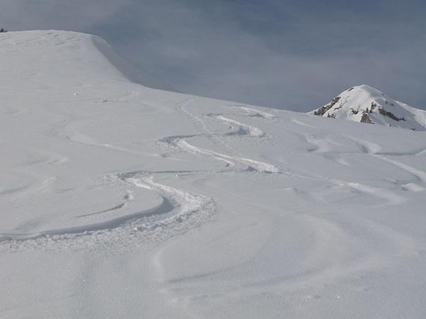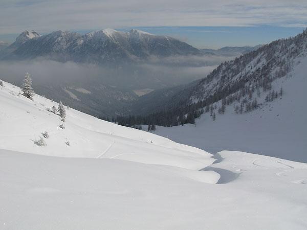 Heute traumhafte Bedingungen: 10 bis 20 cm feinster Pulver auf harter Unterlage - suuuuper! Meine Routenbeschreibungen zum Gröbner Hals gibt es hier unter Skitour mit GPS-Track