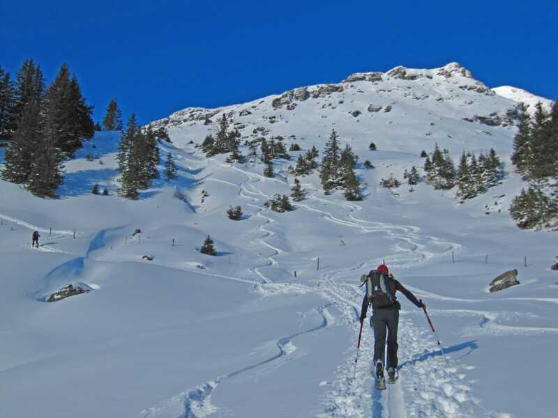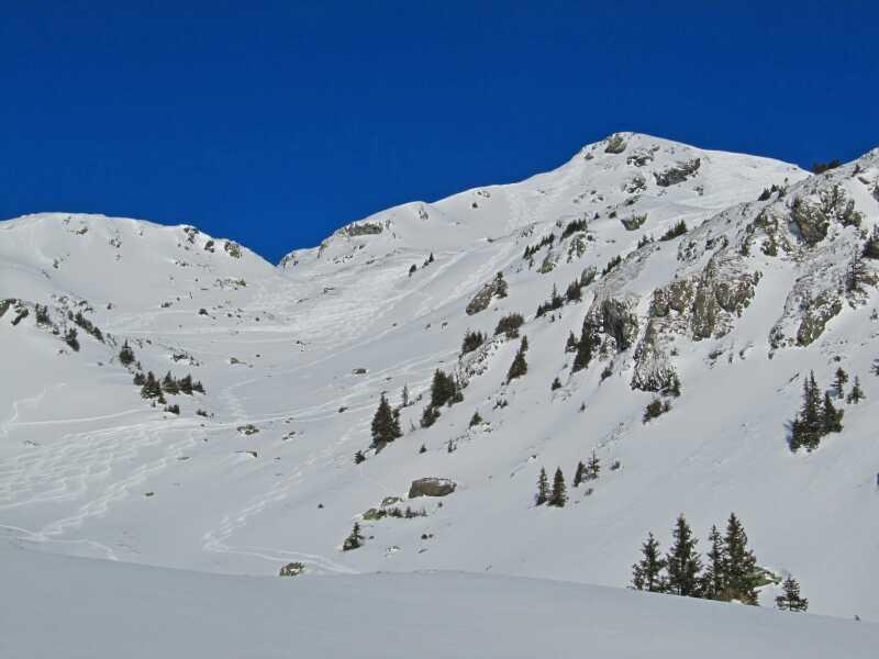 Bei -20°C Start in Lengau zum Staffkogel (2115m). Die Freude war groß als die Sonnenhänge erreicht wurden und man dem Eiskeller entrann. Im Tal ca. 10-15cm Pulver auf Unterlage, oben ca. 30-40cm Pulver meist auf Unterlage. Manchmal konnte man jedoch bei der Abfahrt verdächtige Geräusche unter den Skiern vernehmen, d.h. die eine oder andere Überraschung lauerte unterm Pulver, vor allem im Mittelteil (Unterlage hier z.T. dürftig). Oben windstill und sonnig, sodass auch eine ordenliche Pause möglich war, ohne sich gleich den A.......rm abzufrieren. In Rinnen und hinter Hangkanten gibt es O-seitig an manchen Stellen labile Triebschneebretter.