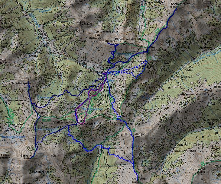 Der Plannerkessel in den Wölzer Tauern soll ein Schneeloch sein, doch heuer war alles ein wenig anders. Bei einem mehrtägigen Aufenthalt auf der zentralen Plannerhütte könnte man auch von den Pisten/Langlauf/Rodel/Kegelbahn – Alternativen profitieren. Dennoch ließen sich in intensiven 4 Tagen 10 Gipfel mit erstaunlich guten Abfahrtsmöglichkeiten relativ einfach ohne Pistenhilfe besteigen.