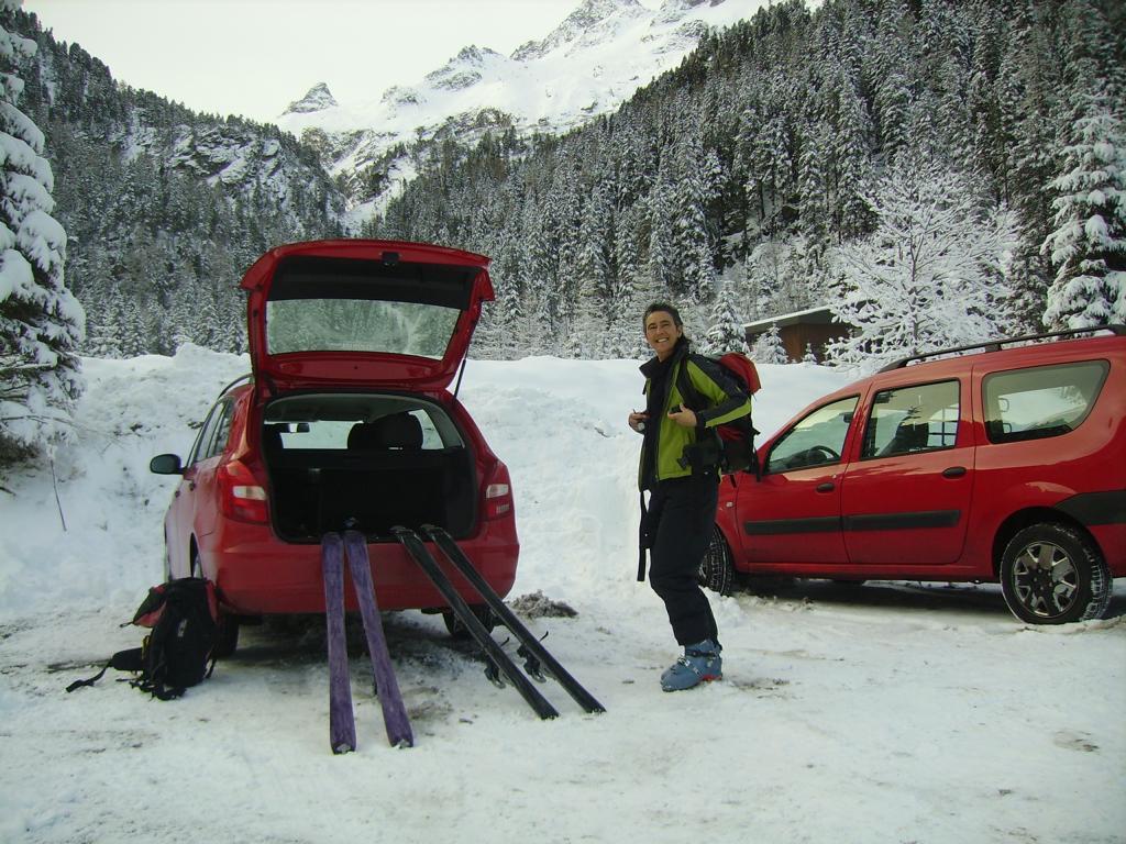 Nicht sehr viel Schnee, Gipfelhang nur zu Fuß möglich.