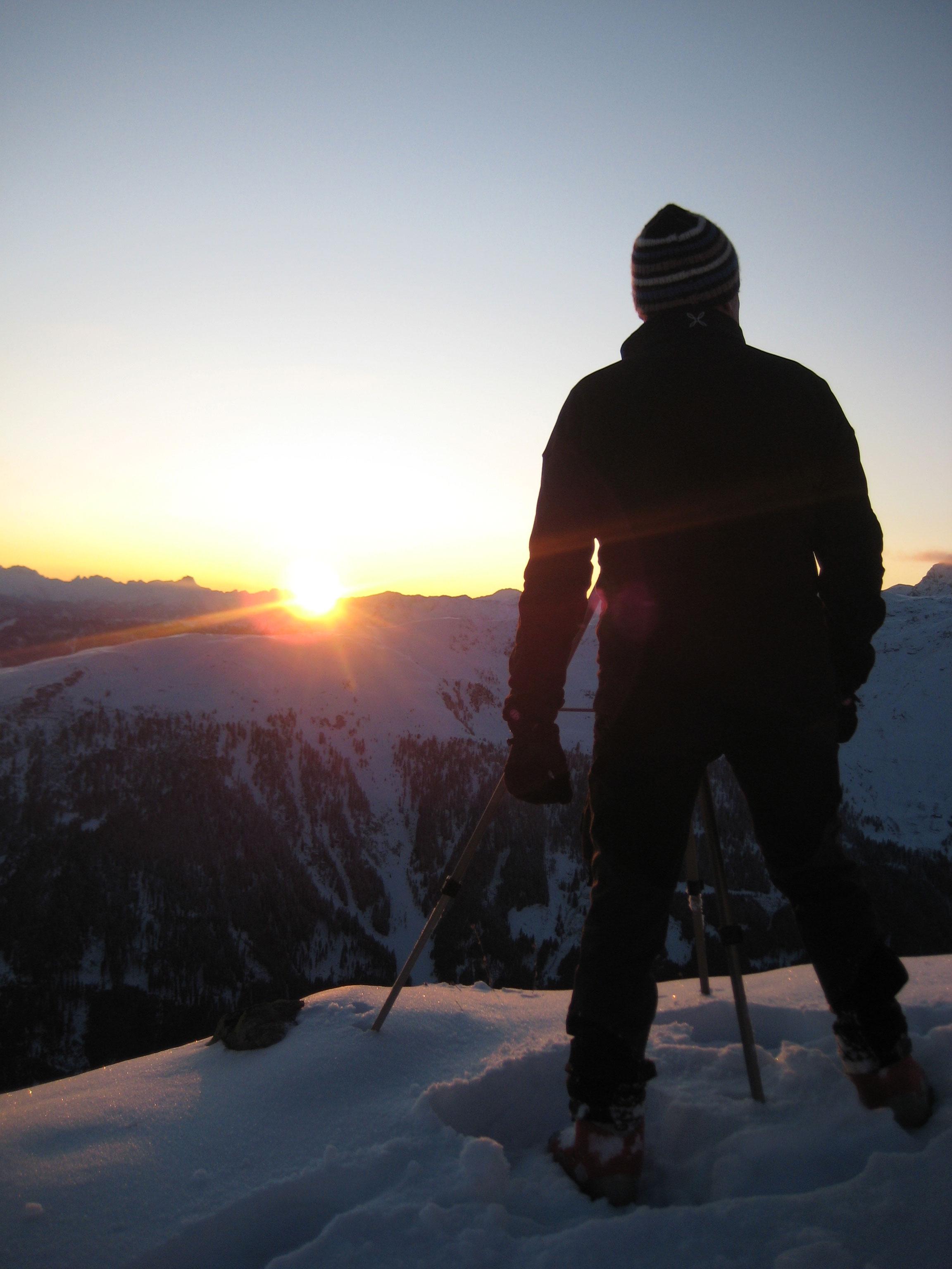 1. Erkundungstour im Schnee noch ohne Schi aber dafür mit schwerem Gerät bewaffnet und schussbereit. Knapp unterm Strasskopf.