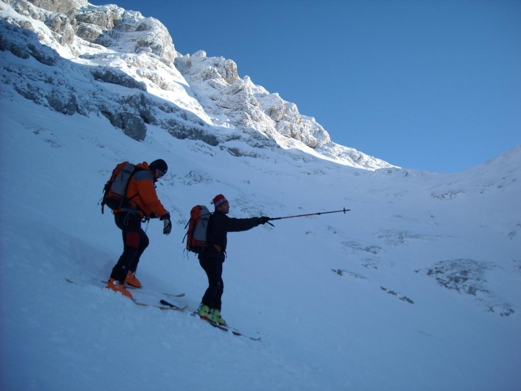 Die Einfahrt in die Bockskehl ist hart aber griffig. Im oberen Teil windverblasen und griffig. Nach dem ersten Felsriegel wird's Plattenpulver.