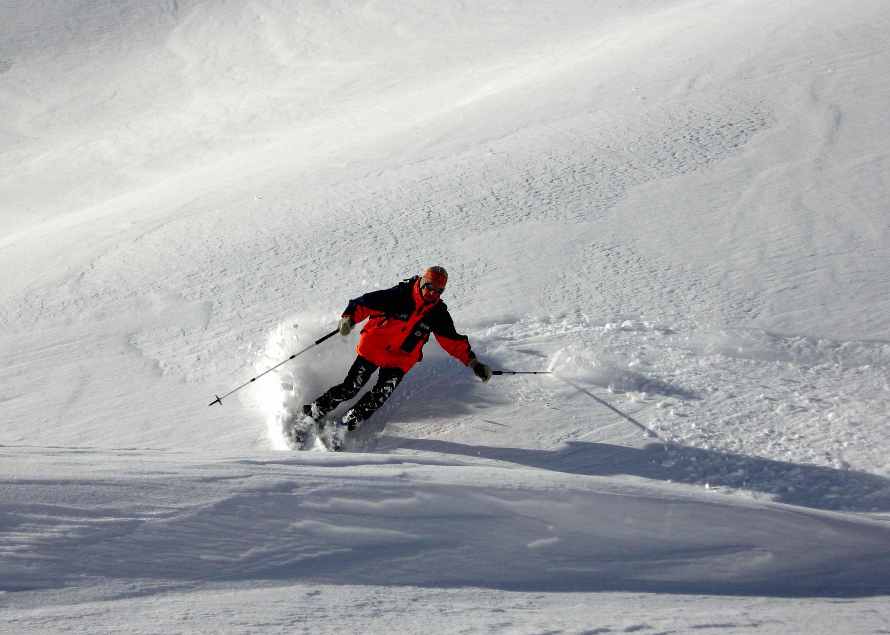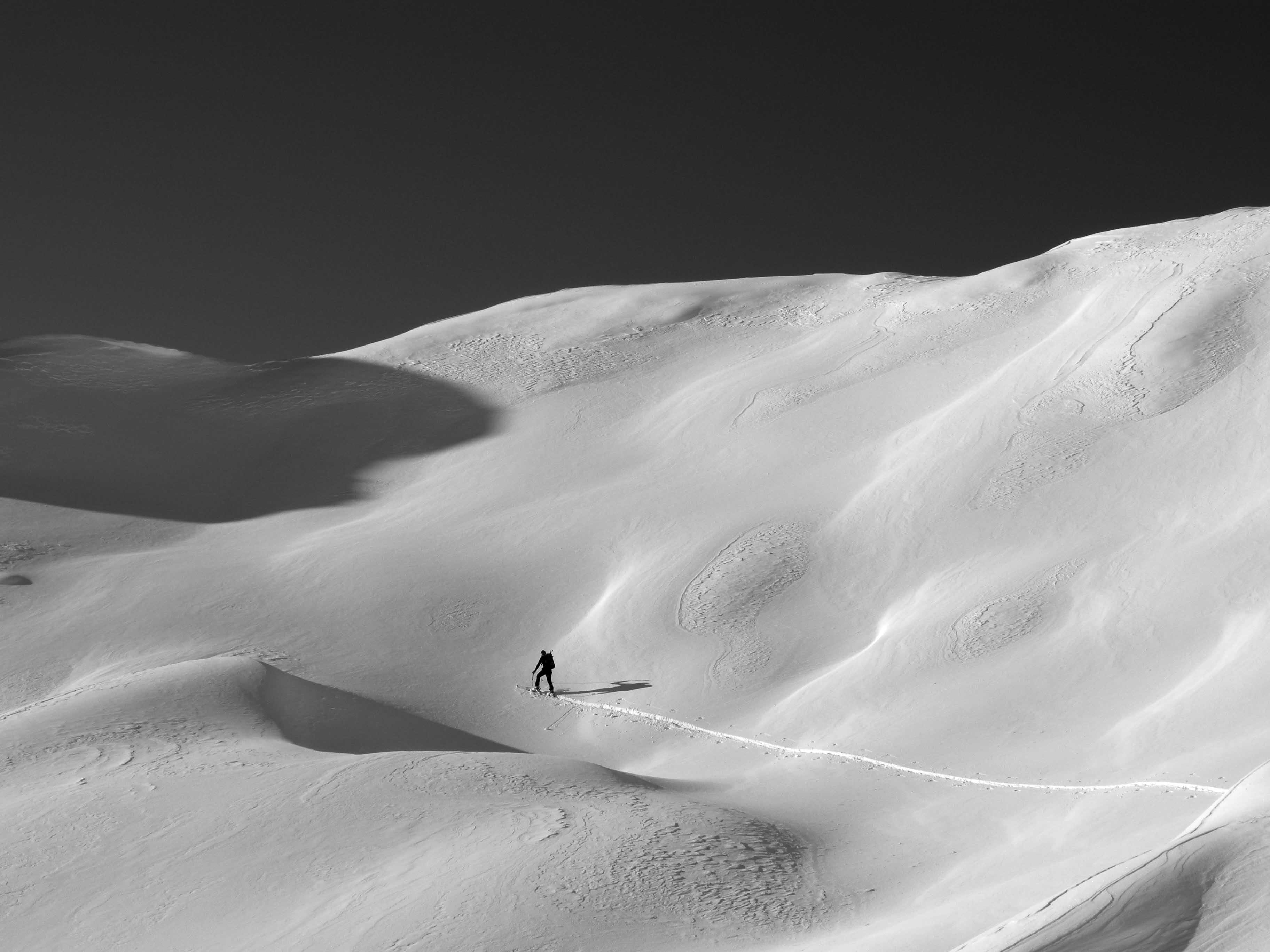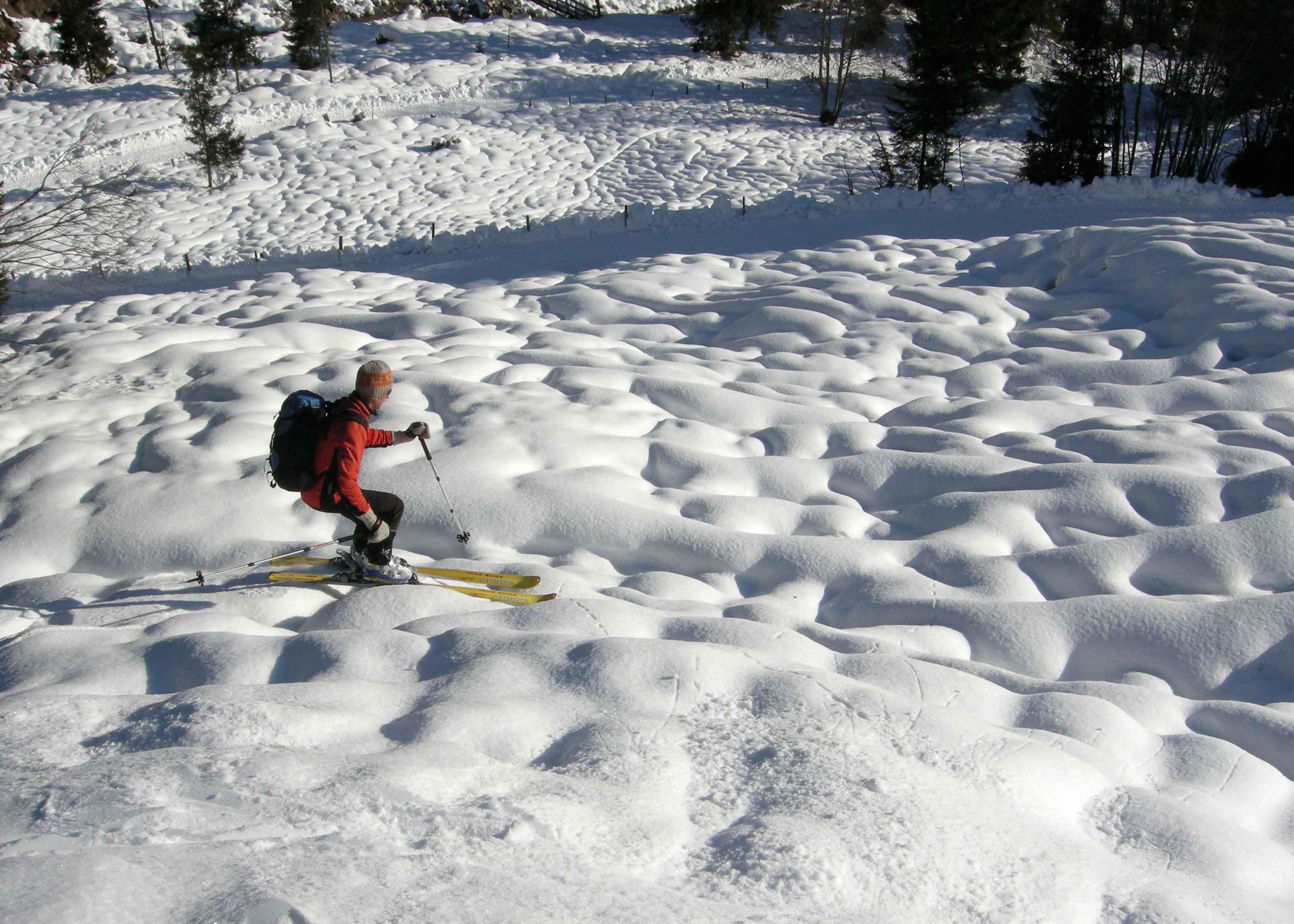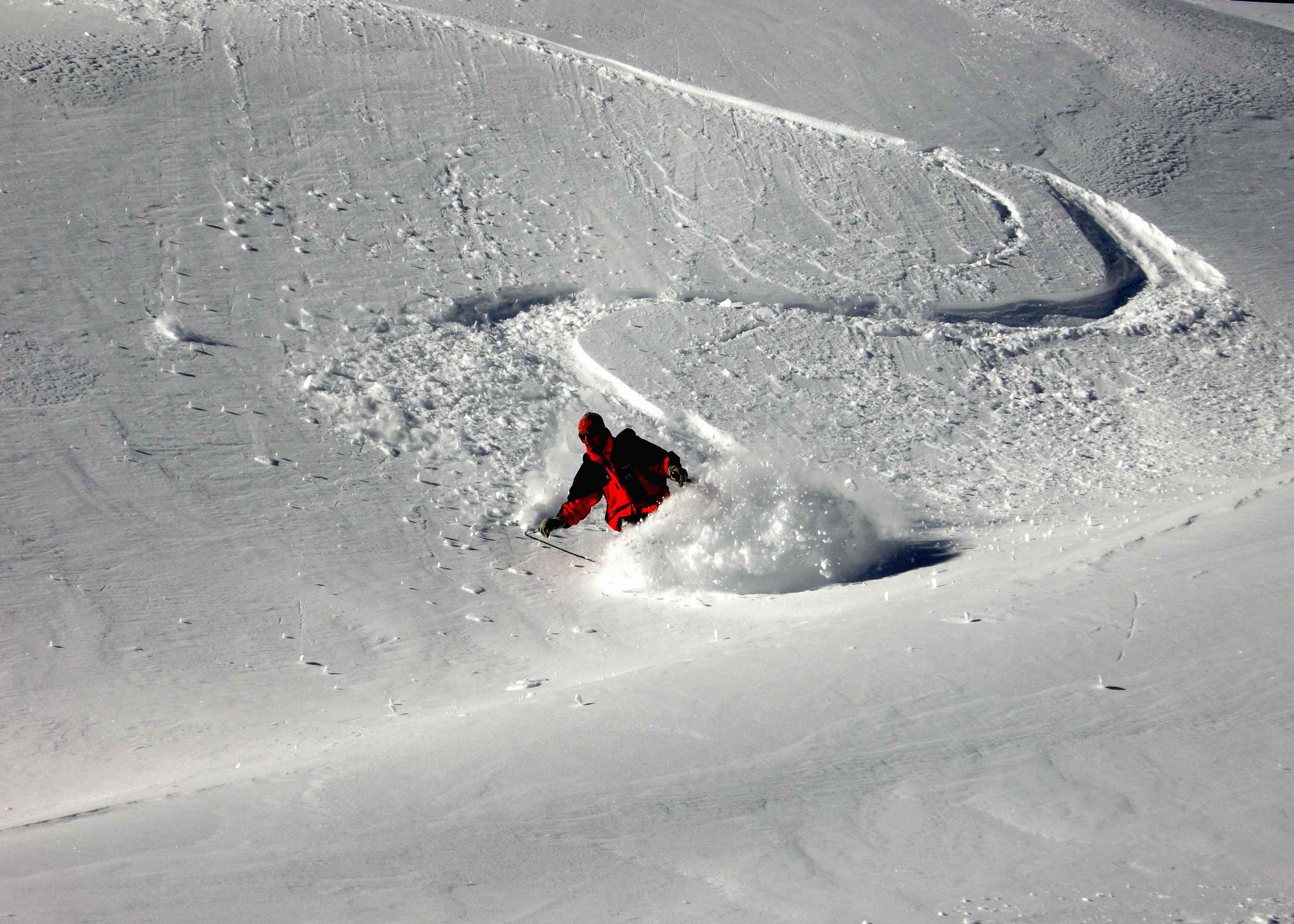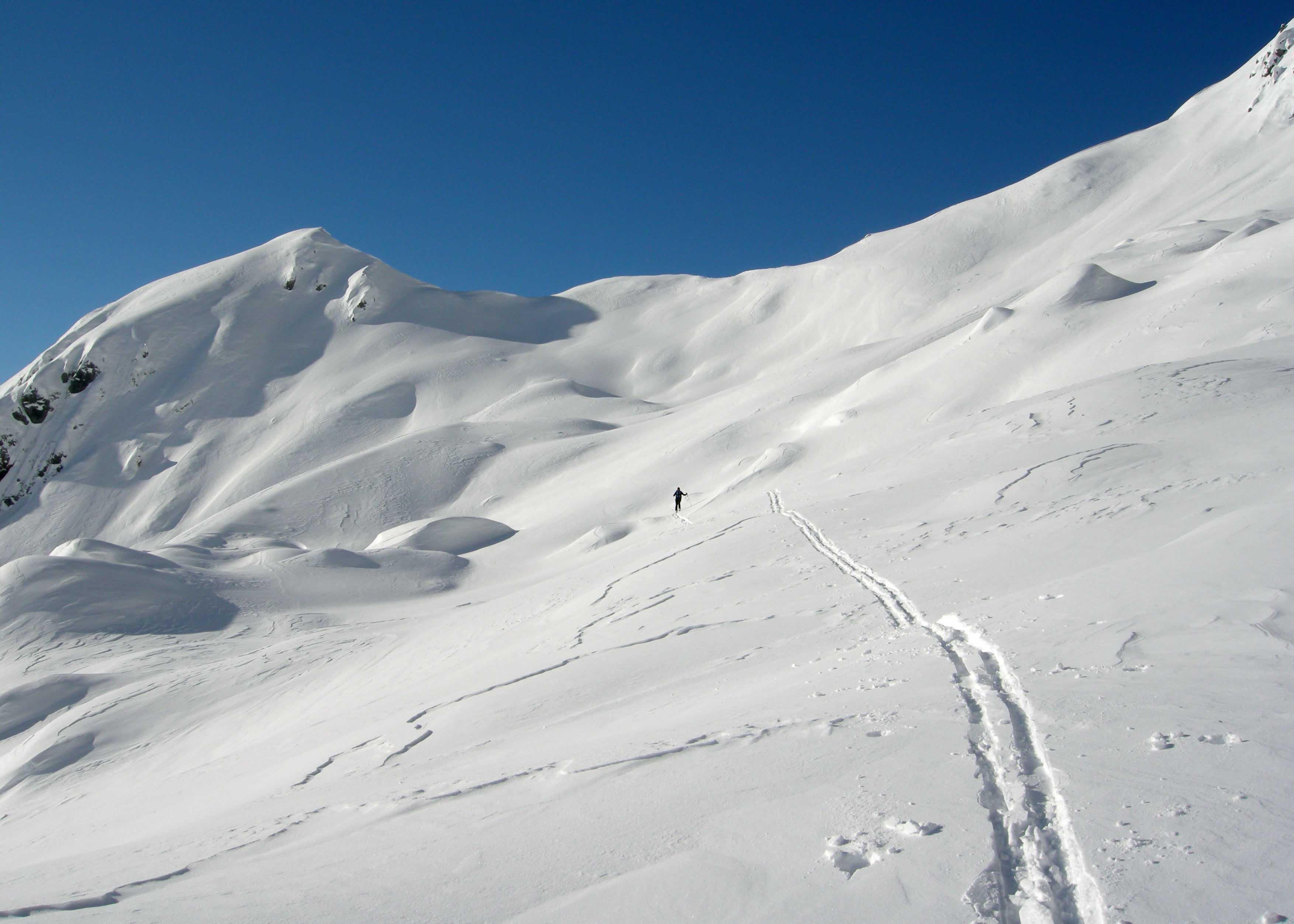 Heute waren wir bei herrlichem Wetter 8 fas 9 alleine auf dem Hennakopf, nur einer war leider vor uns: der Wind. sohatte es den Pulver in die Gräben und Rinnen zusammengeblasen und am Gipfel zeigte er sich von seiner eisigen Seite.