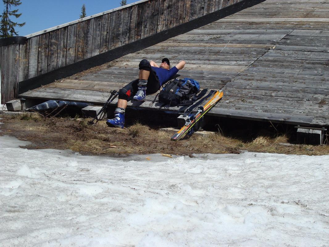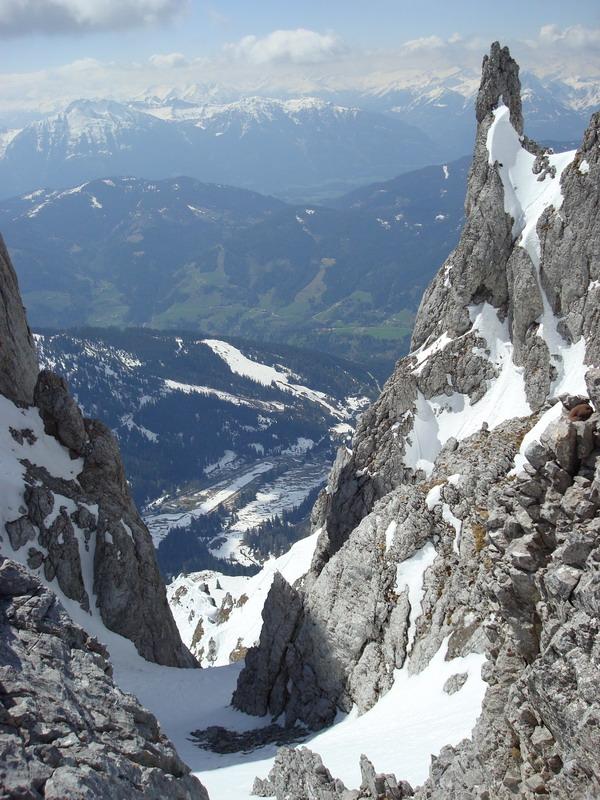 Die Rinnen und Mulden an der Südseite der Mandlwände sind noch ausreichend gefüllt, wenngleich der Tourstart nach einer kühlen Nacht schon bei Sonnenaufgang erfolgen sollte. Die Tourenmöglichkeiten "hinter der Mitterfeldalm" sind derzeit auch noch nahezu unbegrenzt. Die Schi müssen dazu allerdings vom Arthurhaus bis zur Mitterfeldalm getragen werden.