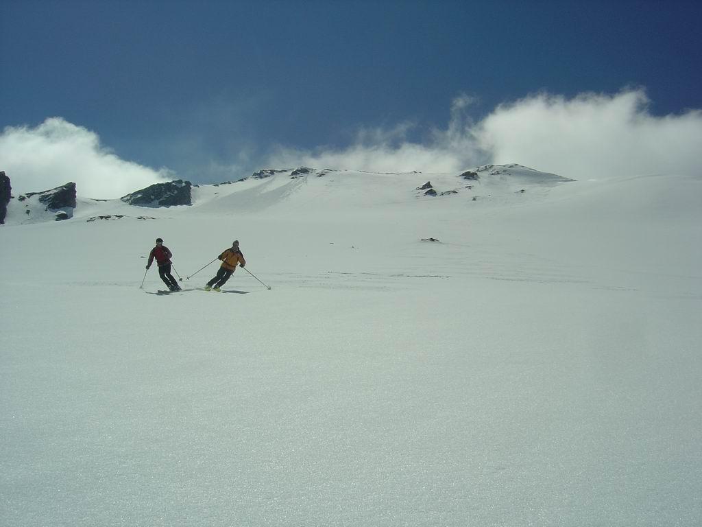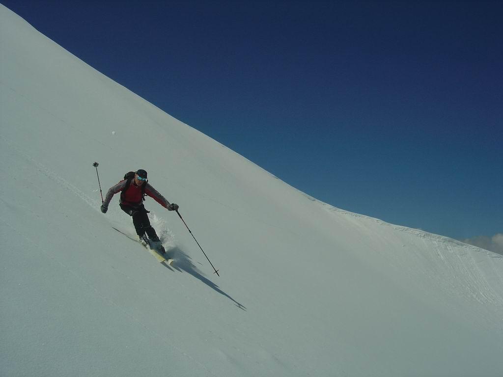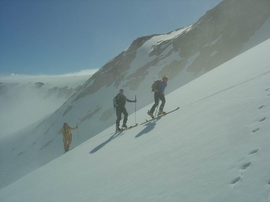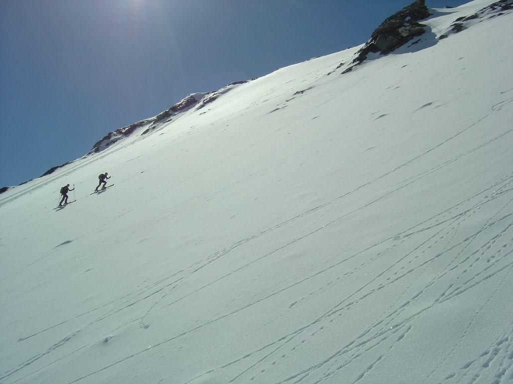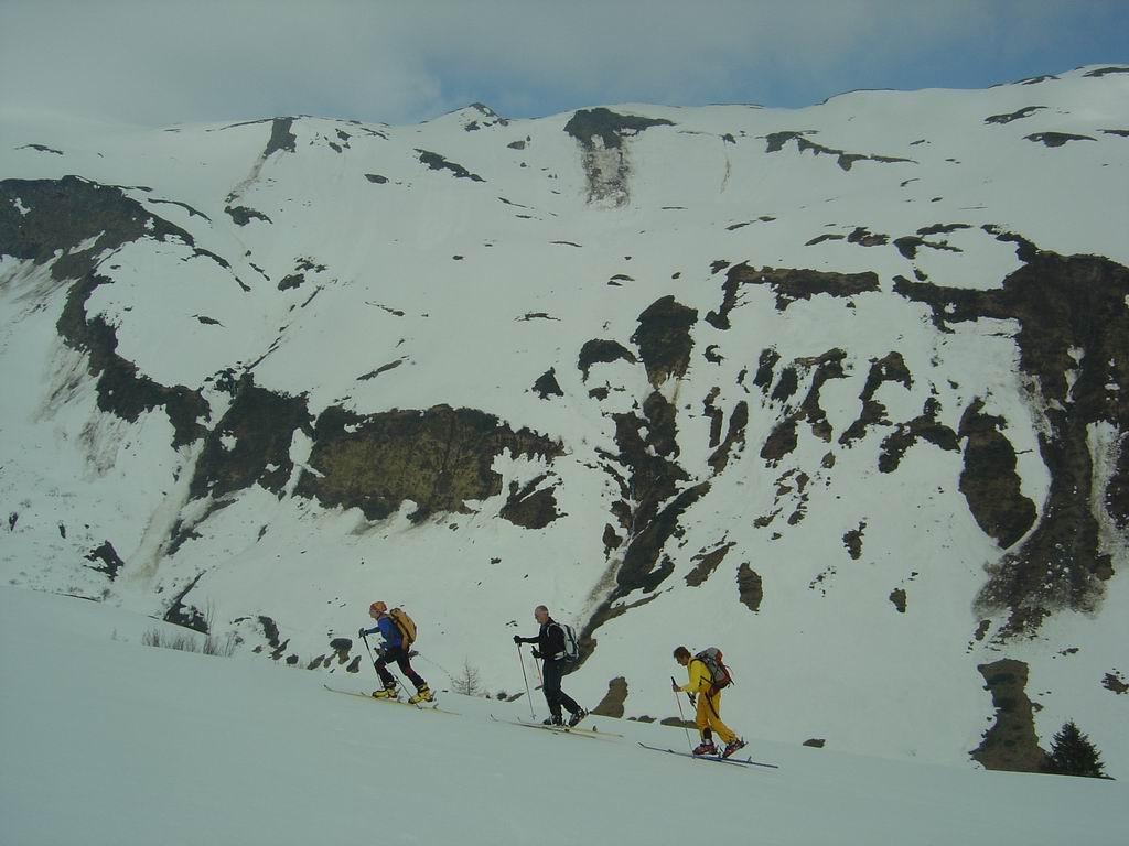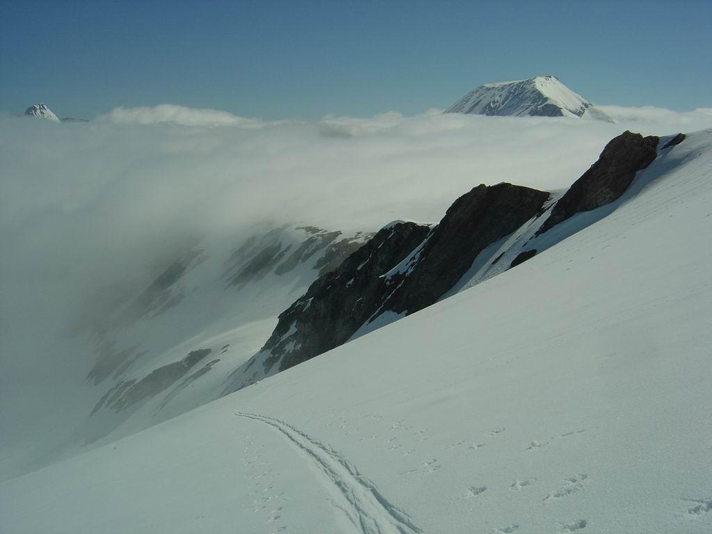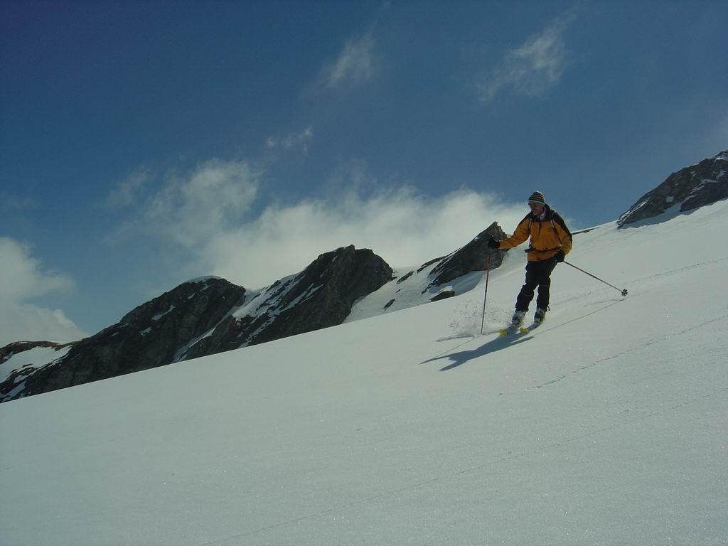 Bei am Morgen starker Bewölkung und Nebel ging es heute vom Riedingtal aus auf die Jägerspitze. Die übliche Zufahrt bis zur Königalm war heute leider nicht möglich, da bereits kurz hinter der Schliereralm eine Kette den Weg versperrte. Daher war tragen bis zur Königalm angesagt. Danach gings mit Ski weiter über die Örgenhiasalm und über wunderschöne Hänge bis unter den Prabitschkopf. Von hier SW-wärts durch eine Senke und über den Nordhang zum Gipfel. Die Abfahrt wartete mit feinstem Firn im oberen Bereich auf. Weiter unten dann - durch die bewölkte Nacht - nur ein dünner, nicht immer tragfähiger Harschdeckel. "Schleichende" Fahrweise war hier gefragt.