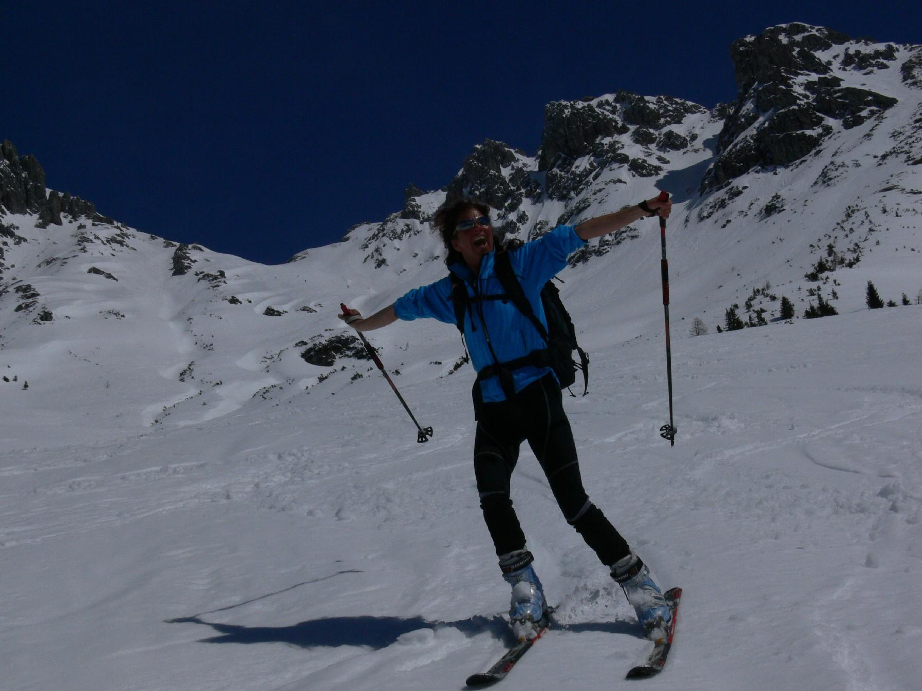 Zum Aufstieg sind schattseitig Harscheisen von Vorteil. Obwohl wir erst gegen 12.15 Uhr abfuhren, waren die Bedingungen besser, als erwartet (nicht allzu tiefer Sulz).