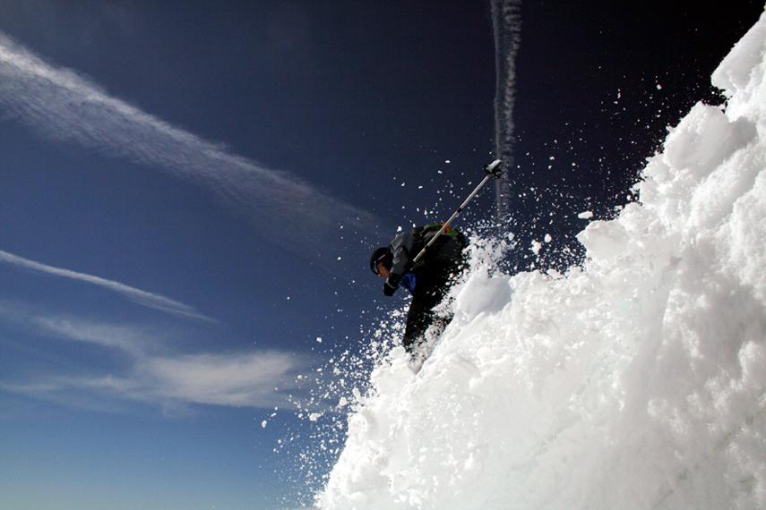 Wir sind "leider" um ein bis zwei Stunden zu spät (erst um 12 Uhr) zu dieser Tour aufgebrochen und hatten deswegen bei der Abfahrt teilweise doch schon ziemlich weiche Bedingungen. Wer aber früh genug dran ist, der erwischt hier sicher traumhaften Firn.