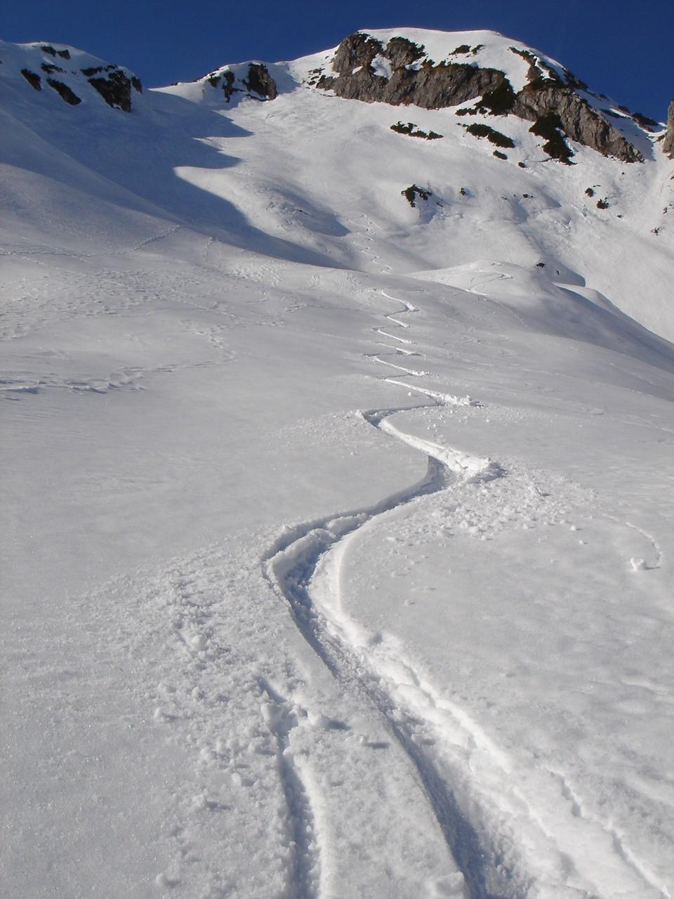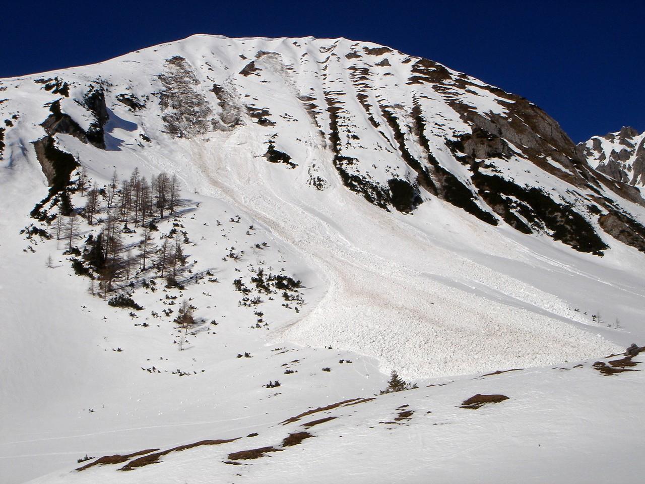 Über die Hafeichtalm auf den Großen Bärnstaffl, Abfahrt Südostkar, anschließend Aufstieg Spazeck und retour ins Flachautal. Schnee: Sonnseitig Sulz bis zum Boden - nicht ungefährlich, im Südostkar ca. 10 cm rutschfähige Schicht auf tragendem Grund. Nordseitig (Spazeck) im oberen Teil stellenweise noch pickelhart mit pulvrigen (!) Einlagen.