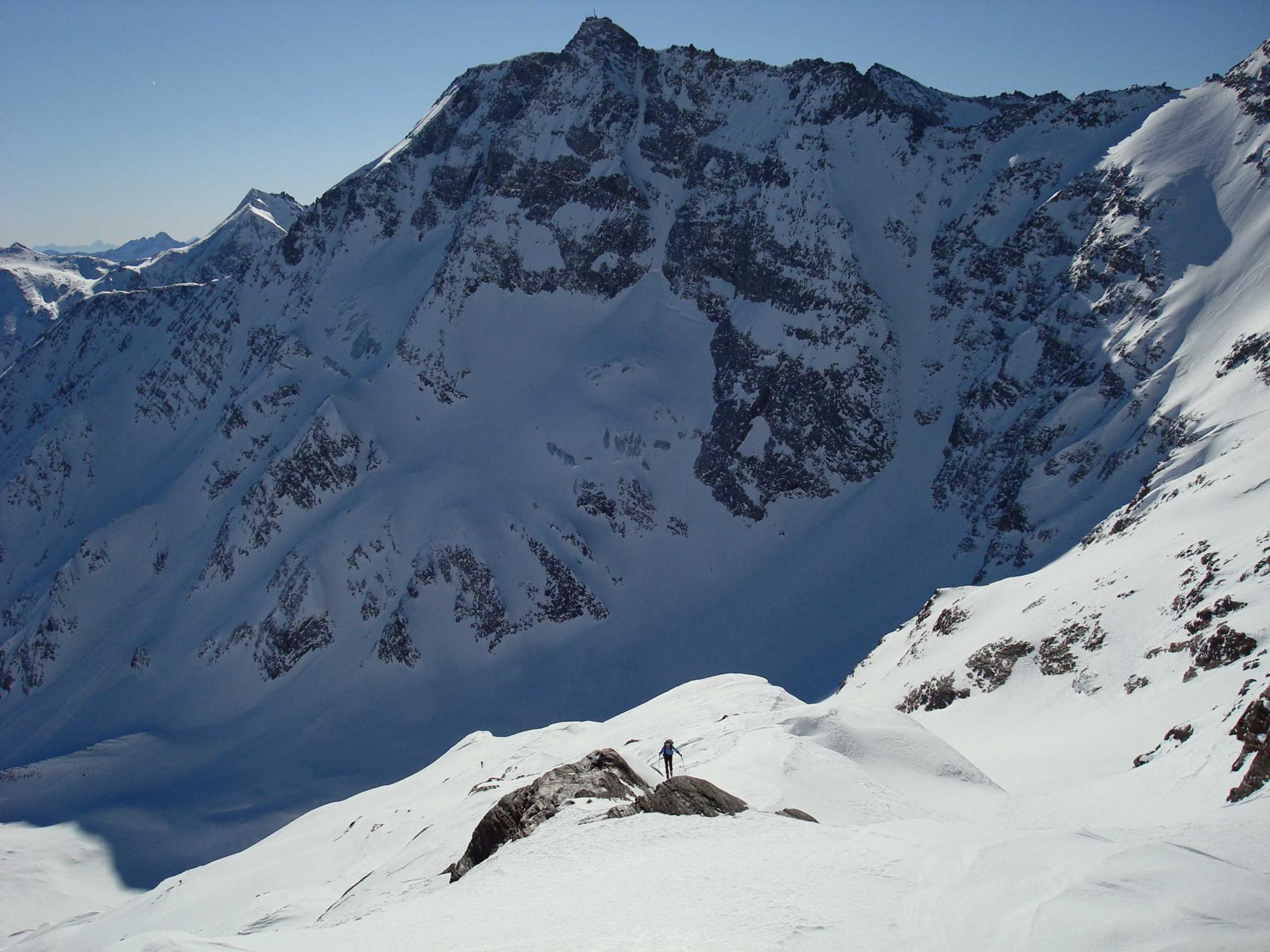 Abfahrt: Bereich Hocharn-Kees windgepreßt, dann folgen wunderschöne Abfahrtsmeter im Pulver (nur leicht von der Sonne bearbeitet).