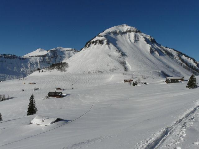 Traumhaft schönes Winterwetter ca. 15 cm Pulverschnee. Bei den Genneralmen und im Gipfelbereich starker Südwind